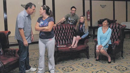 Support this theatre evening of comedy, dinner and charity on Friday September 23. Pictured left: Noel Dillon, Kim Brown, Mark McGee, Eukaria O’Grady and Evelyn Kileen McCrann in rehearsal.