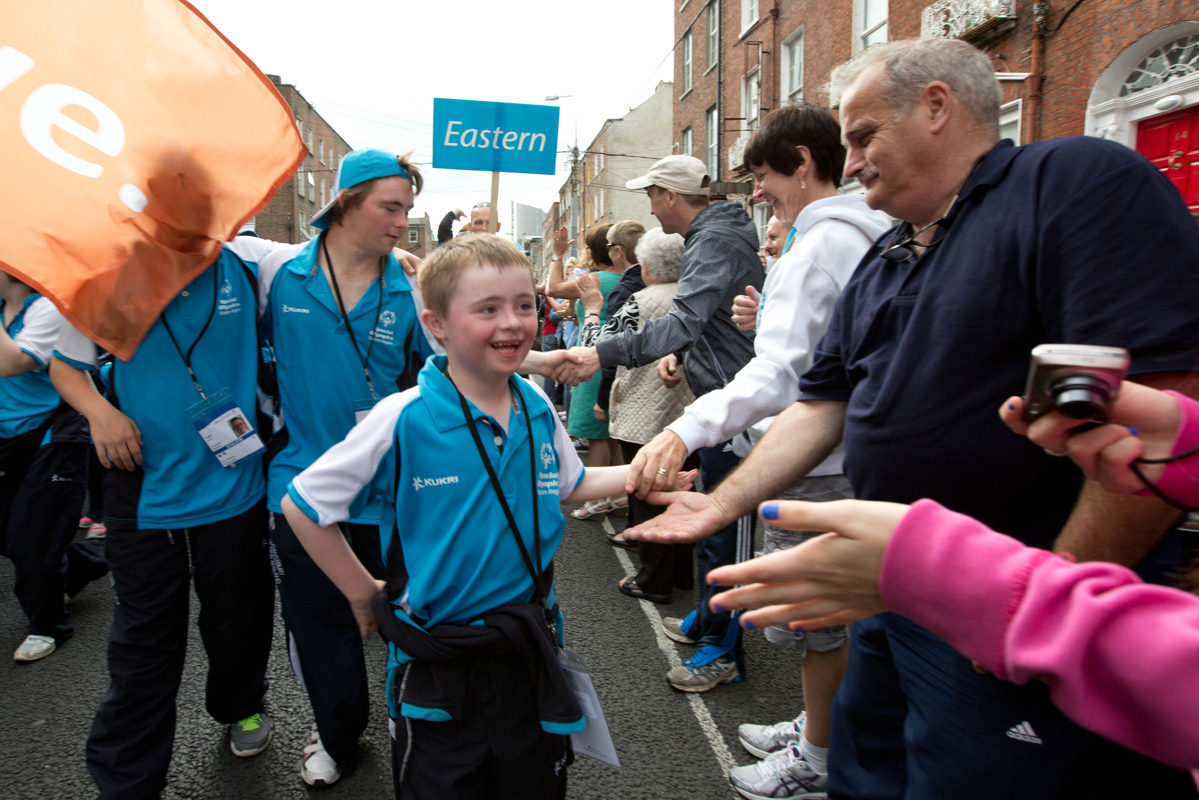 Crowds basked in glorious sunshine as 1,500 athletes representing every county in Ireland paraded through Limerick city centre led by the 40 strong Special Olympics Torch Run team. The athletes were cheered by thousands of people who lined the parade route along O’Connell Street as it made its way up to the People’s Park for the official opening ceremony of the Special Olympic Ireland Games 2014. A programme of music and entertainment had everyone up dancing before long in the People’s Park. Let the games begin