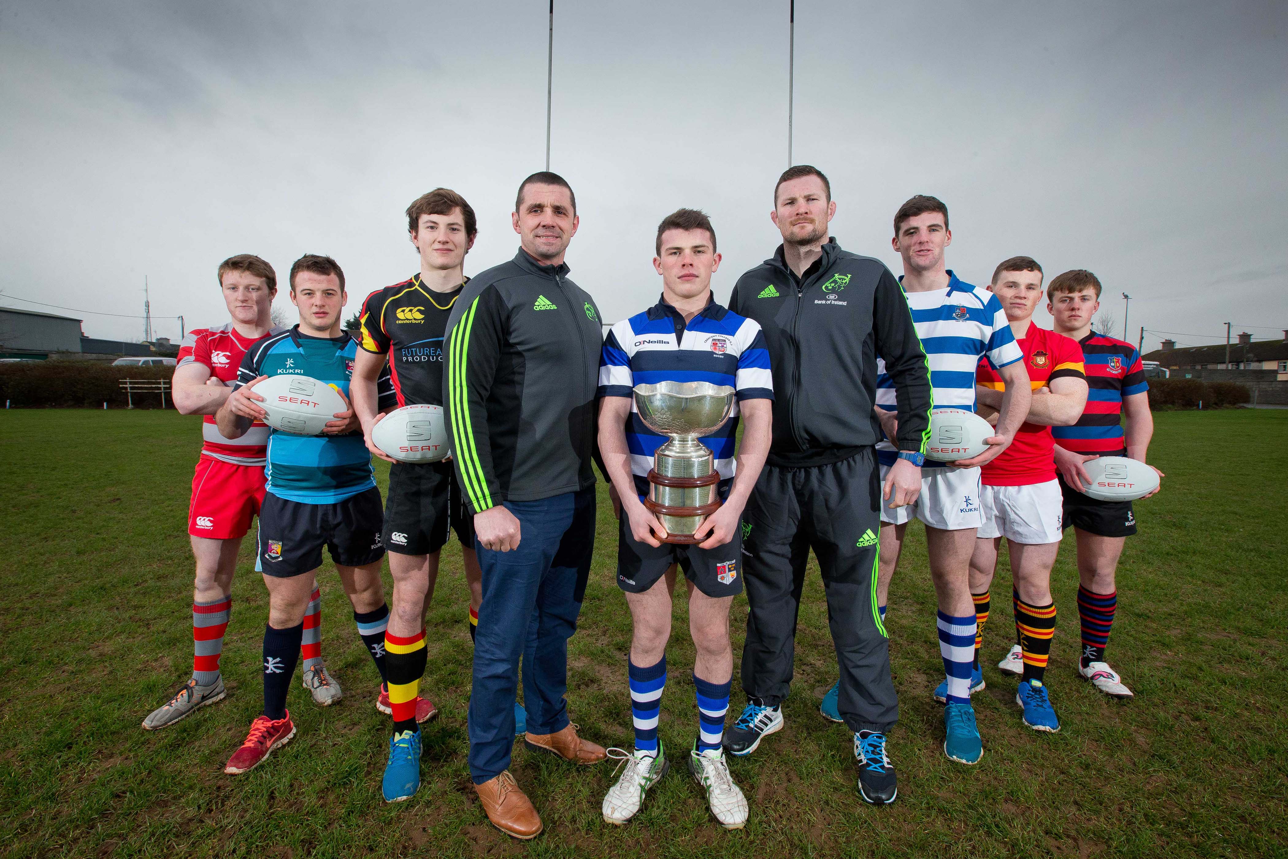 Munster Schools Cup players along with SEAT ambassadors Donnacha Ryan and Alan Quinlan gathered in Blackwater Motors, Fermoy this week to launch the SEAT Munster Schools Senior and Junior Cups competitions, ahead of the Senior Cup’s opening round fixtures this week. 2015 marks the 106th Munster Schools Cup and the second year that SEAT, the official car partner to the Munster team, has been involved in the competition.