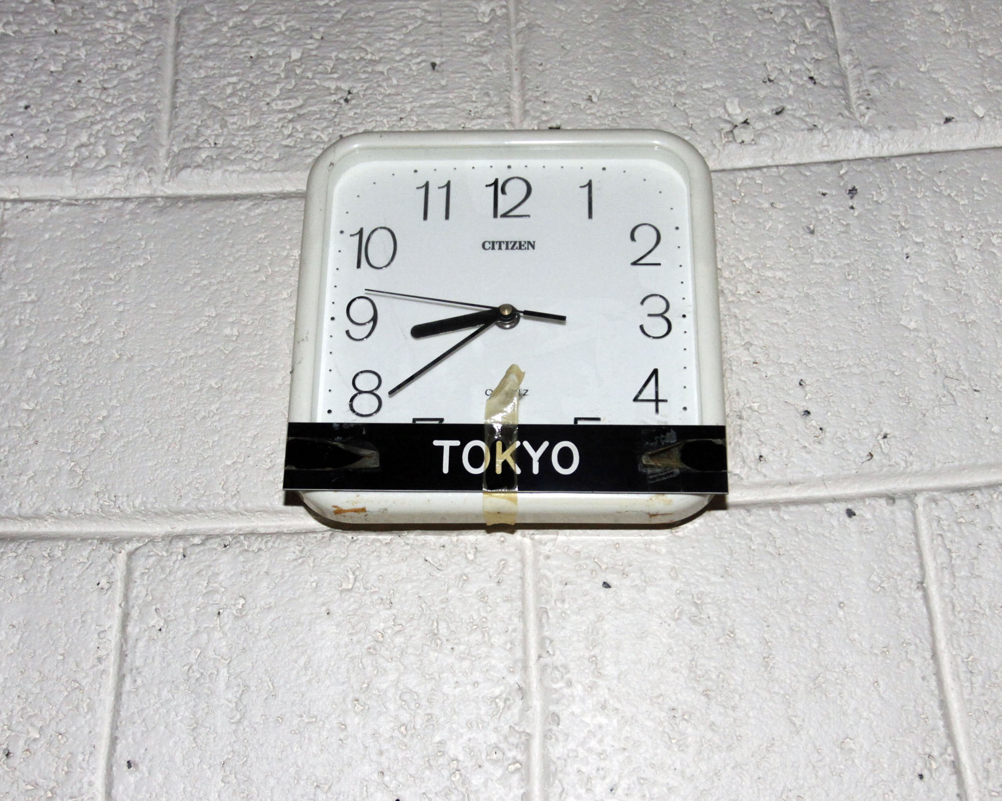 A clock, which hangs on the wall inside the main entrance ominously reveals the time in Tokyo, but has stopped, probably long before the fall of the Berlin Wall.