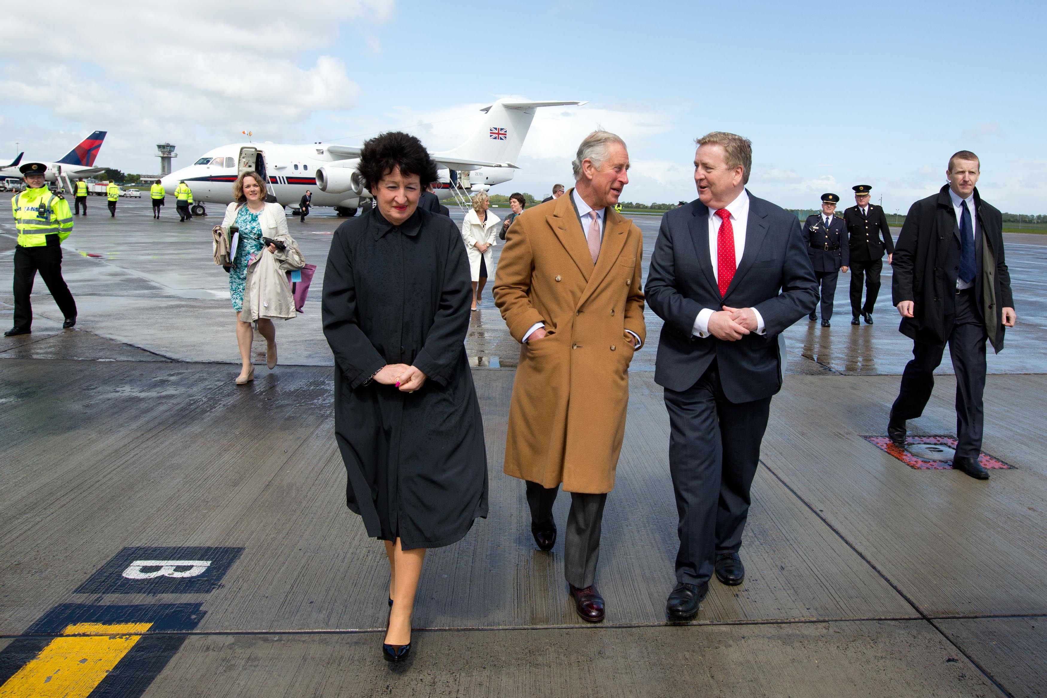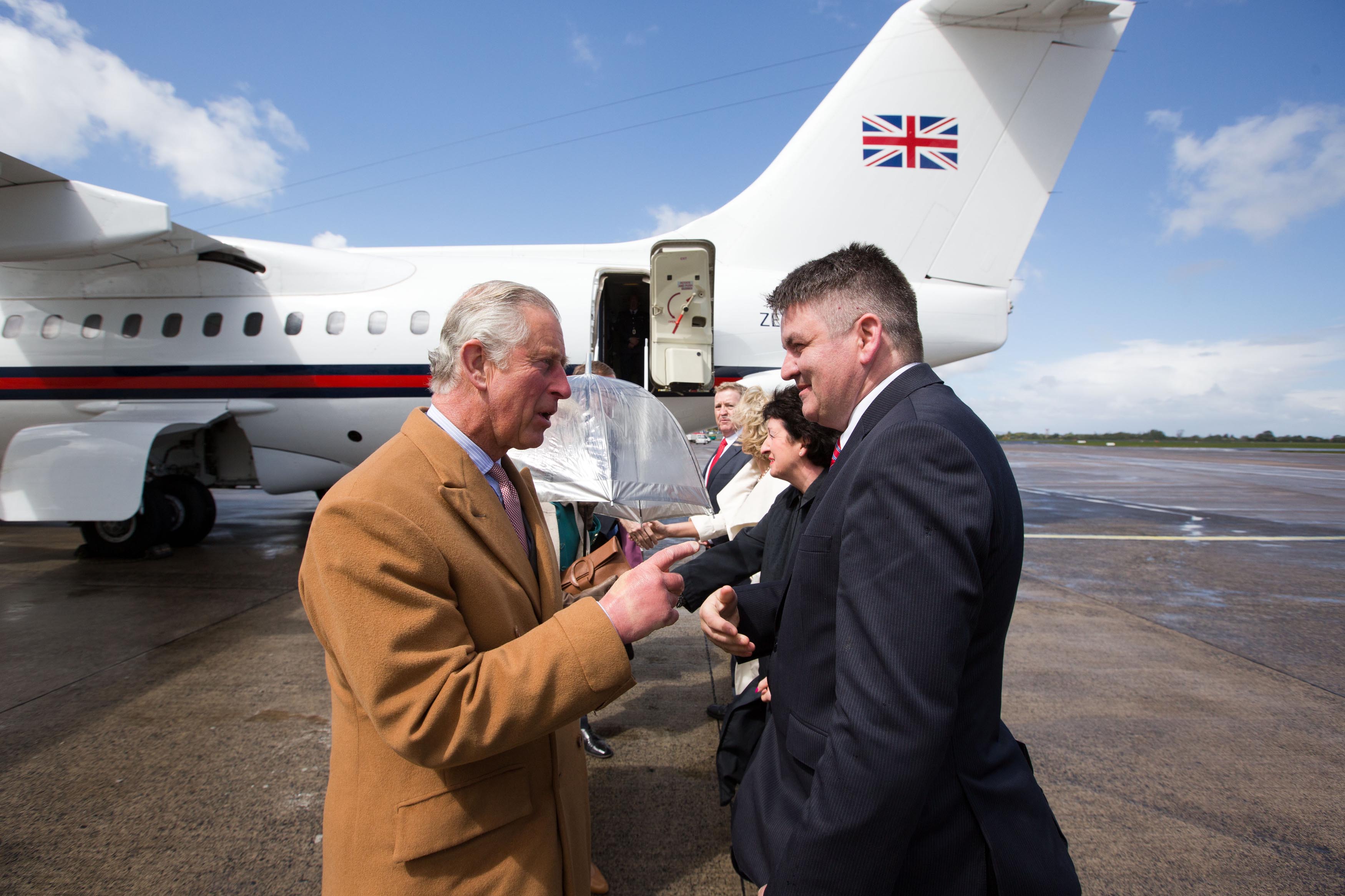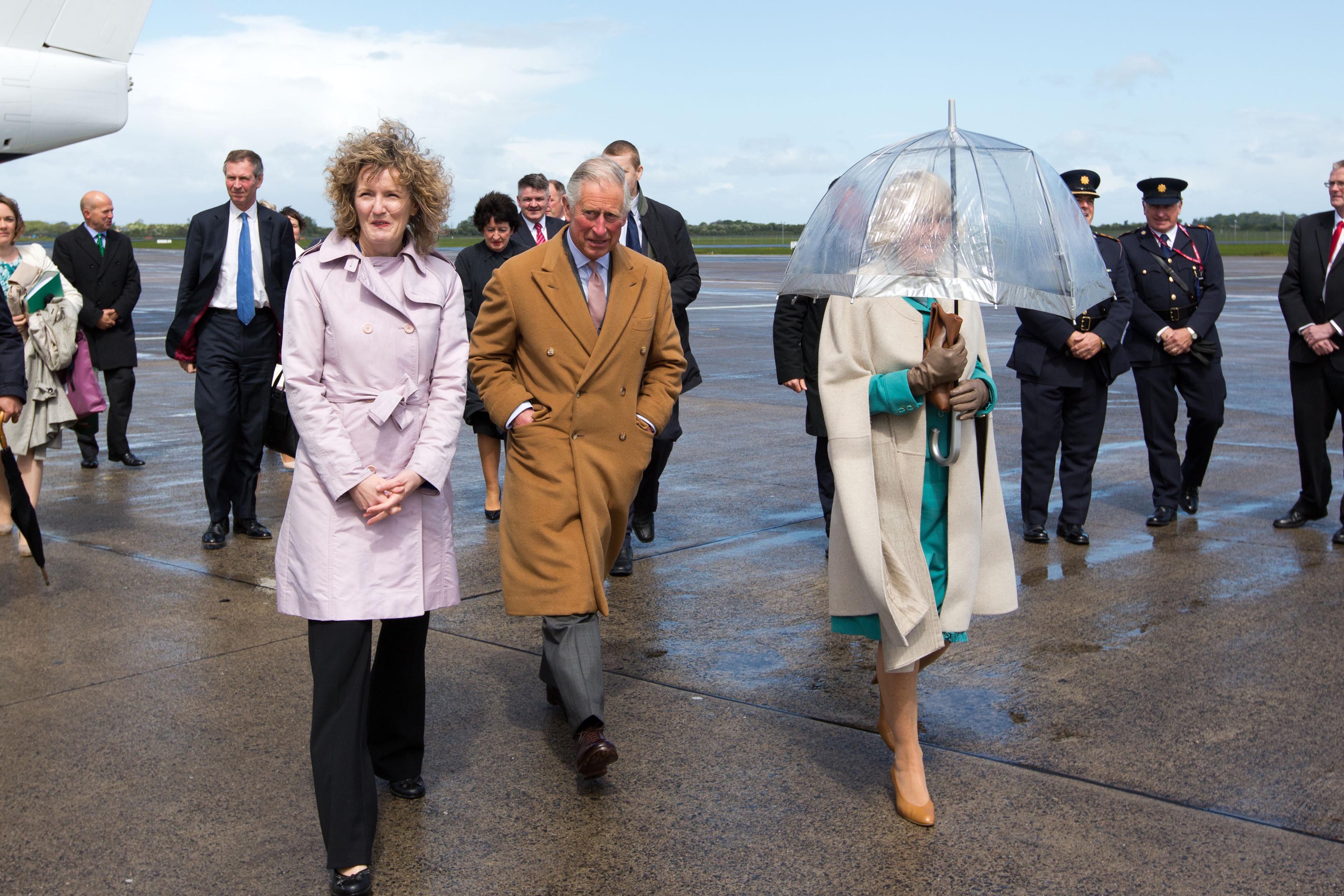 The Prince and Duchess were welcomed on arrival by Shannon Group Chairman Rose Hynes, CEO Neil Pakey, Chairman of the Joint Oireachtas Committee on Foreign Affairs and Clare T.D. Pat Breen and Deputy Mayor of Clare County Council Joe Cooney.