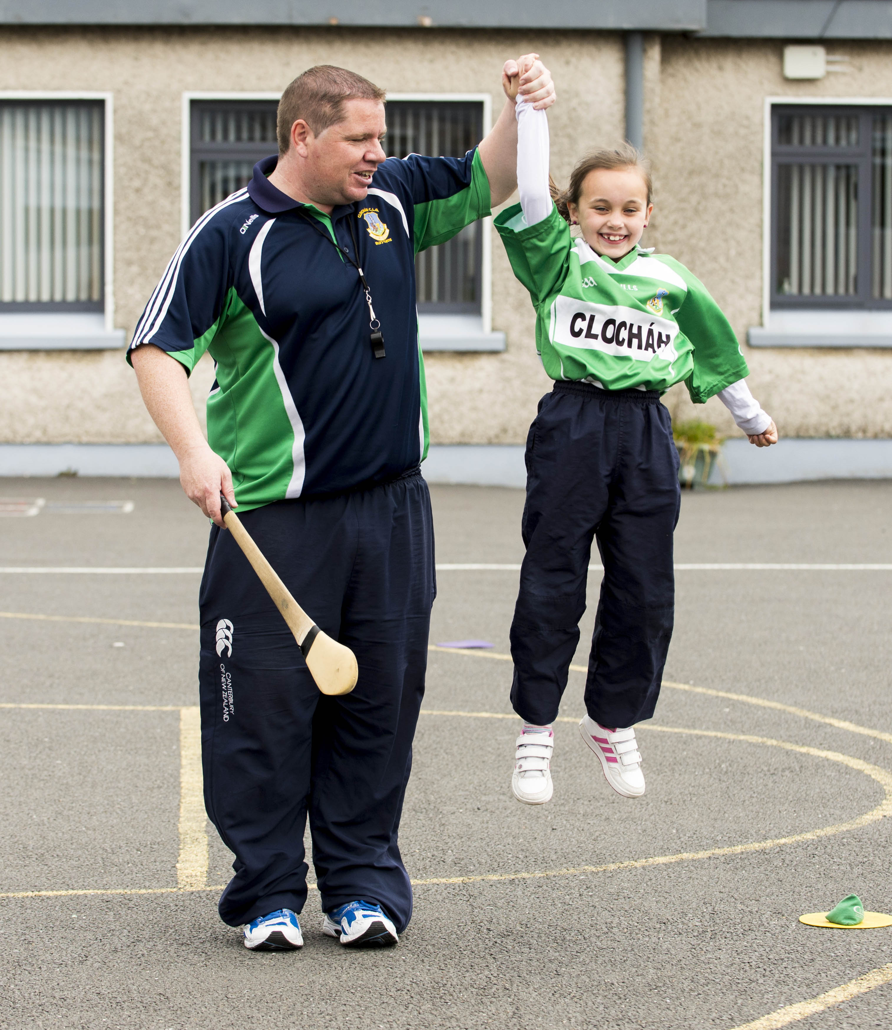 Pictured during a hurling training session is Emily O’Callaghan-Smith, 1st class, along with hurling coach Mike Power, Claughaun GAA club.