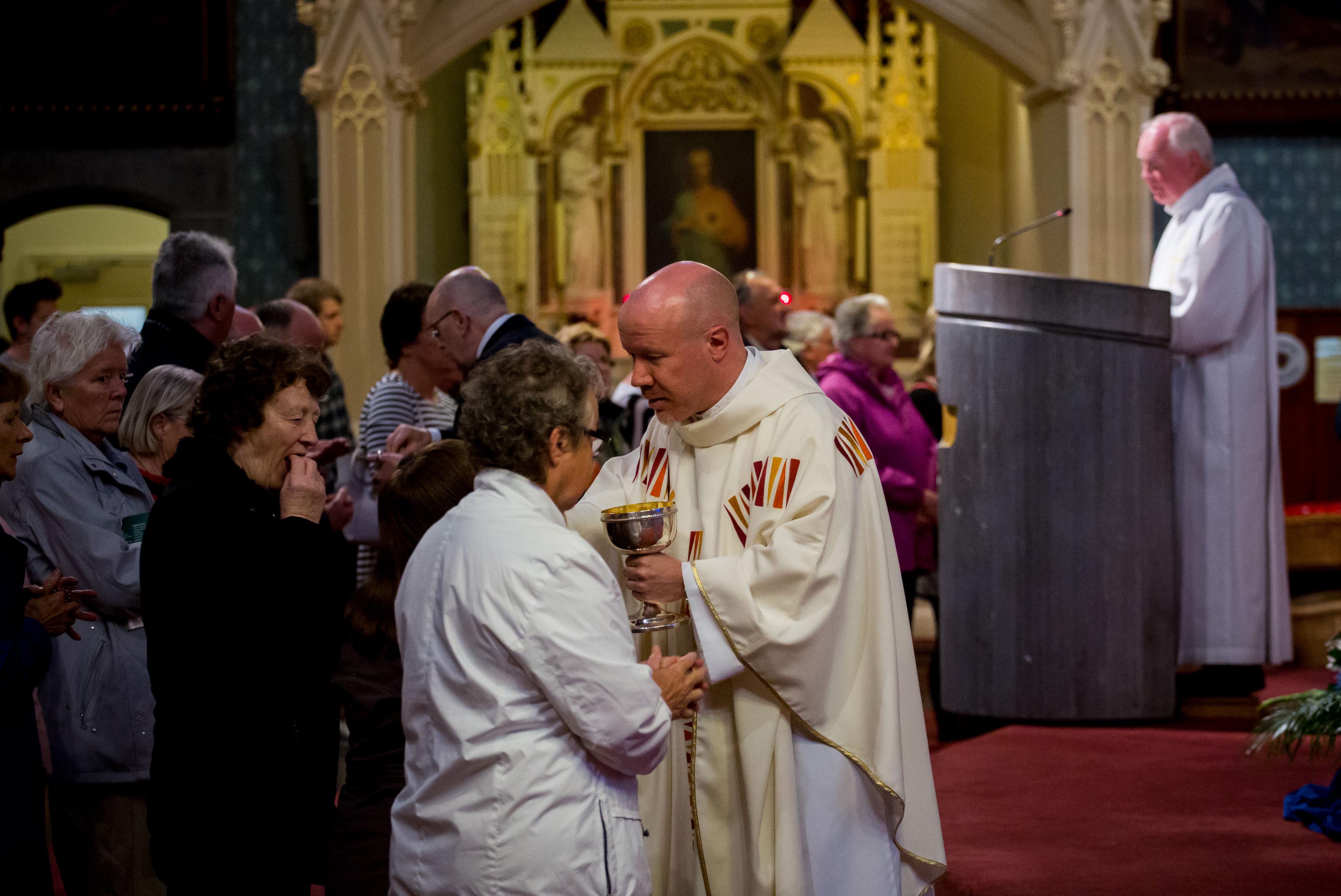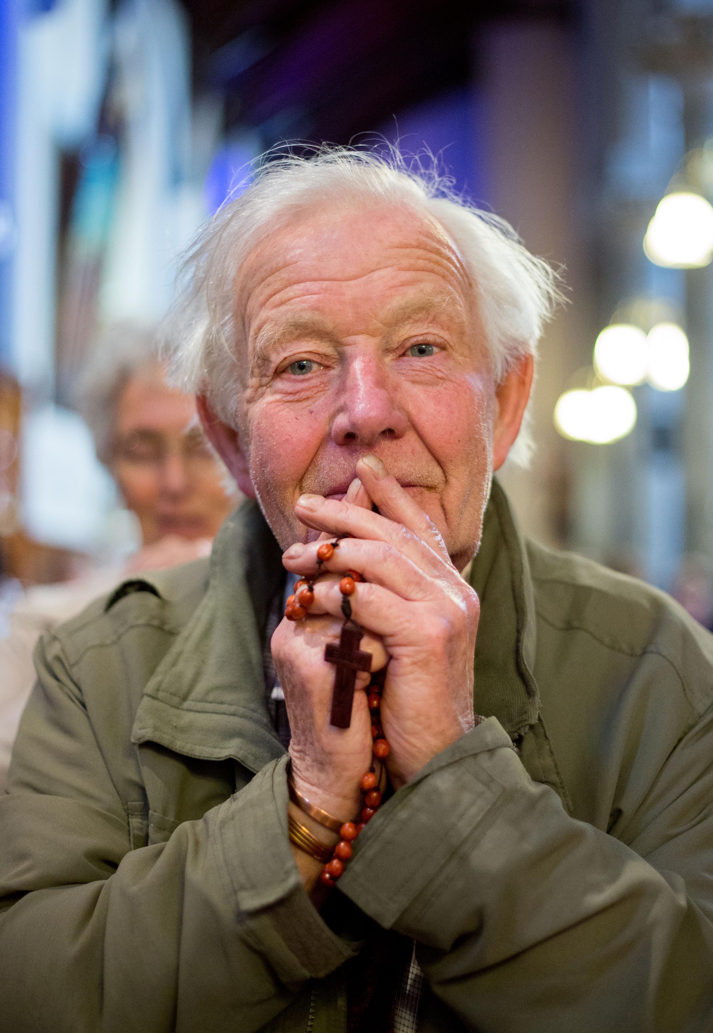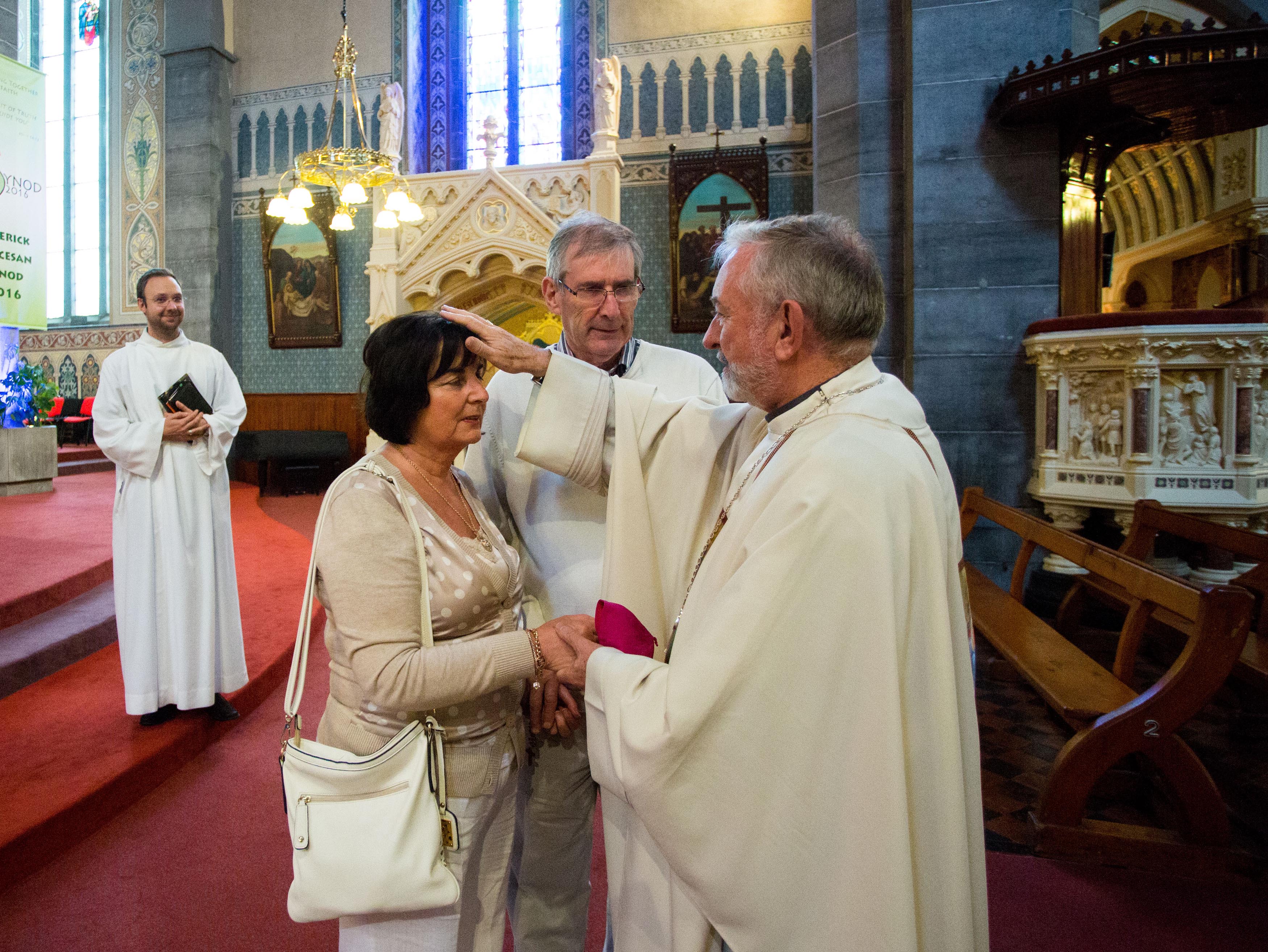 Bert Bennett, Shannon Banks, Limerick watches as his wife Irene receives a blessing from Father Keiran O’Reilly, Archbishop to Cashel and Emily after Novena mass. Picture: Alan Place/FusionShooters.
