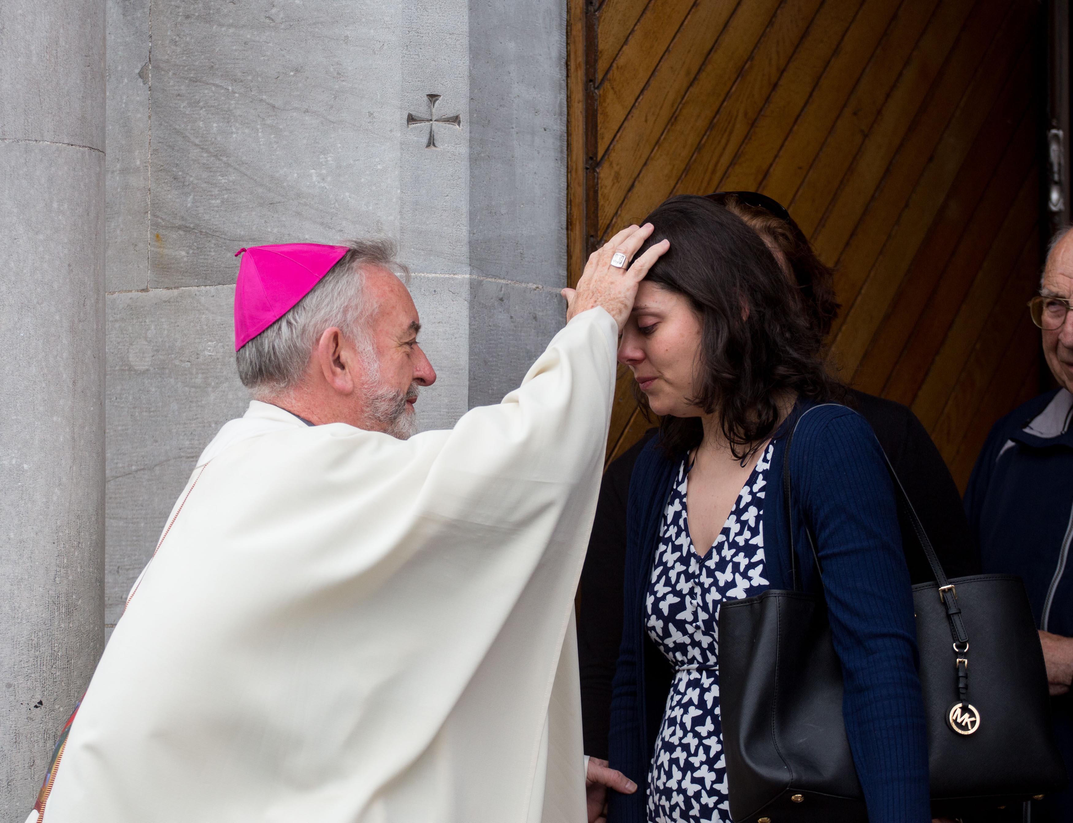 Paula Quish, Sixmilebridge, Co. Clare receives a blessing from Father Keiran O’Reilly, Archbishop to Cashel and Emily after Novena mass. Picture: Alan Place/FusionShooters.