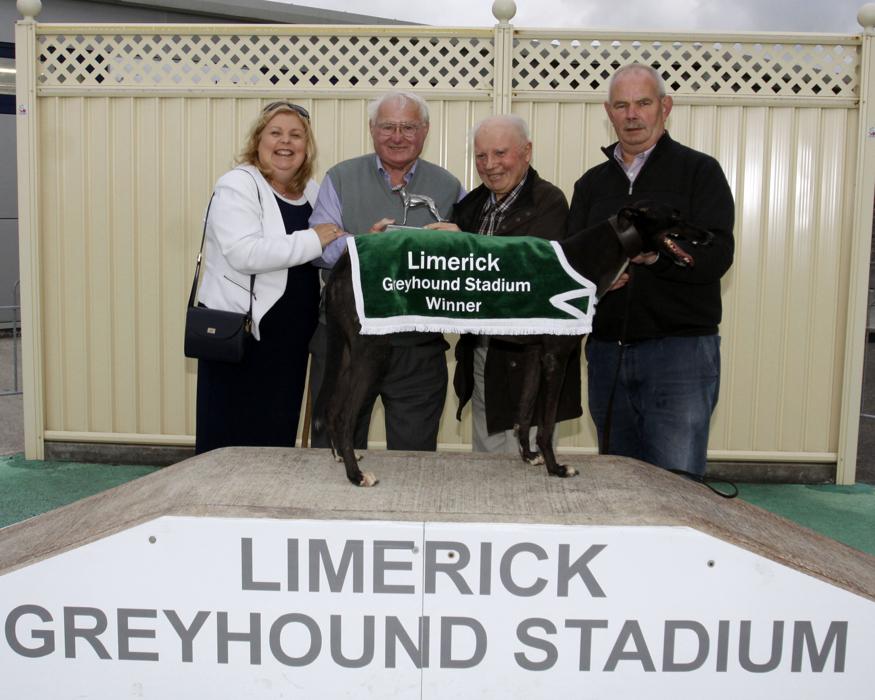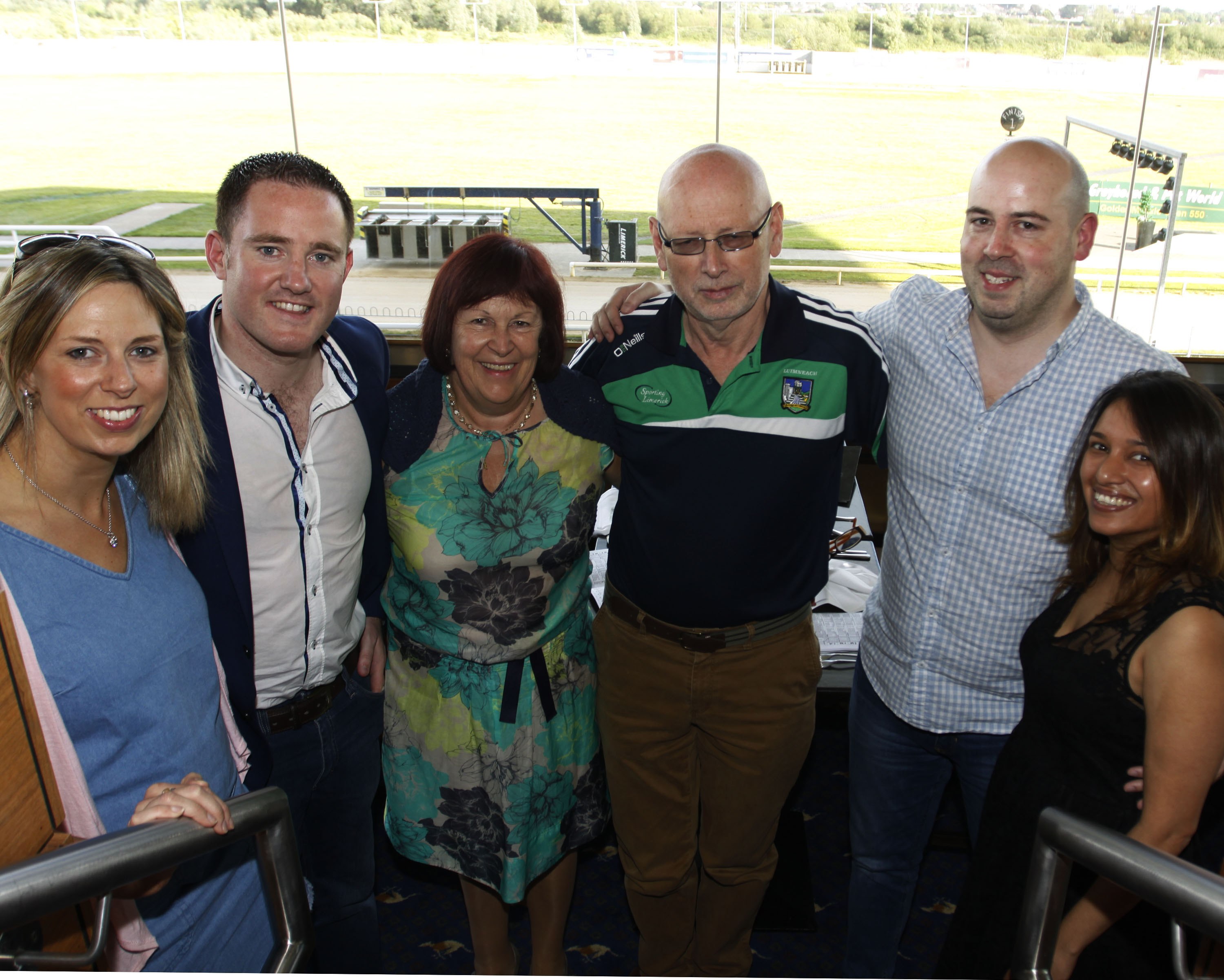 Niamh and Peter Sheehan, Julie and Mike Broderick and Ciara Broderick with Rubi Miah, celebrating Mike’s Birthday and supporting Down Syndrome Ireland Night at the Dogs at Limerick Greyhound Stadium.