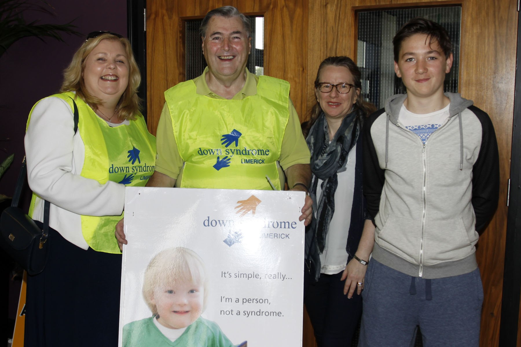 Noreen Keane, Paul O’Connor, Catherine Beattie with Kevin Dowling raising Funds for Down Syndrome Ireland Night at the Dogs at Limerick Greyhound Stadium.