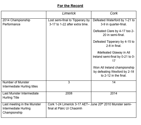 Cork and Limerick last met in the final in 1997 when Cork won by 1-15 to 1-12.
