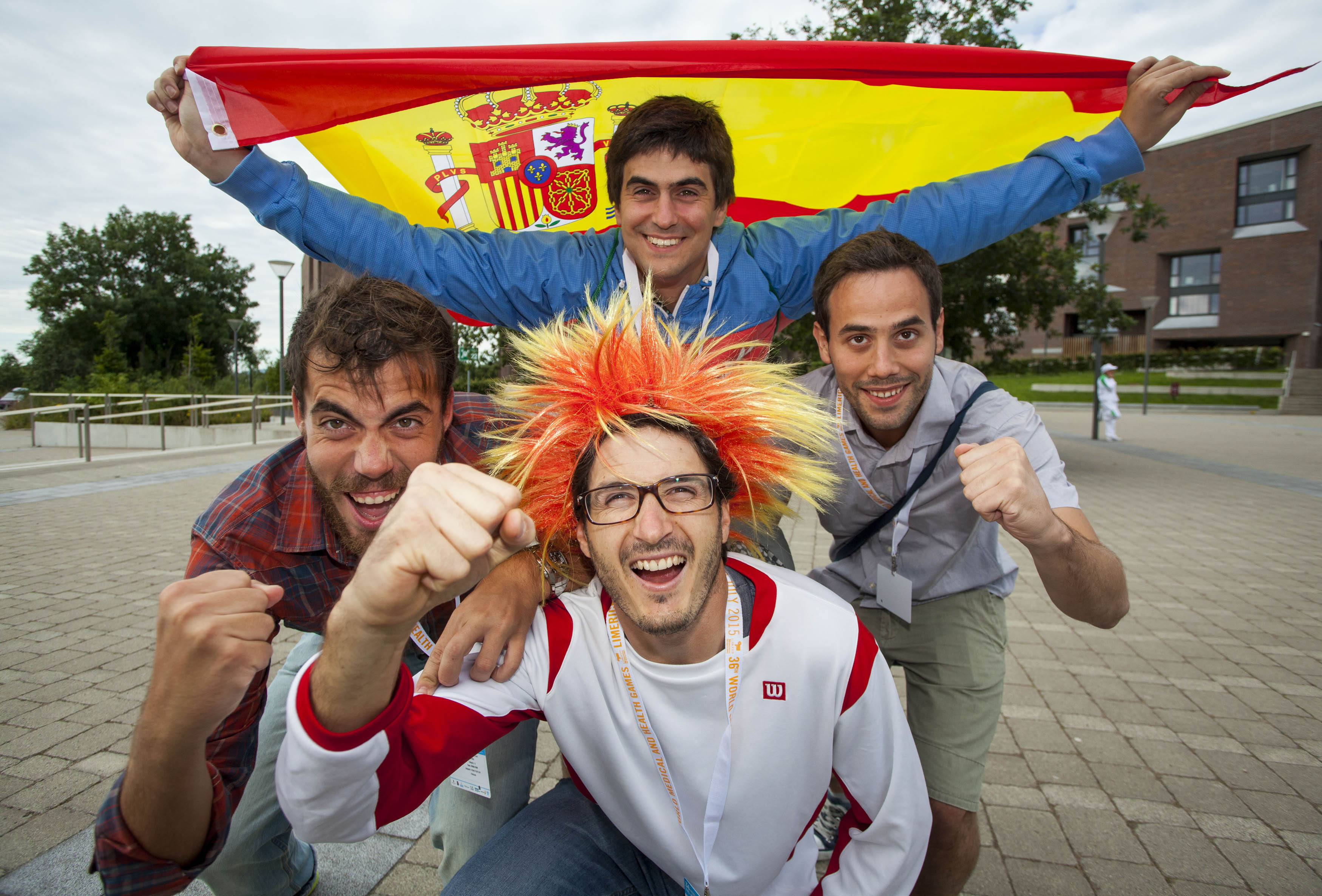 Celebrating the opening Ceremony at the University of Limerick were Team Spain athletes, Juan Toral Sanchez, Ignacio Perez Buendian and Roi Ribera Sanchez. Picture credit: Alan Place/Fusionshooters