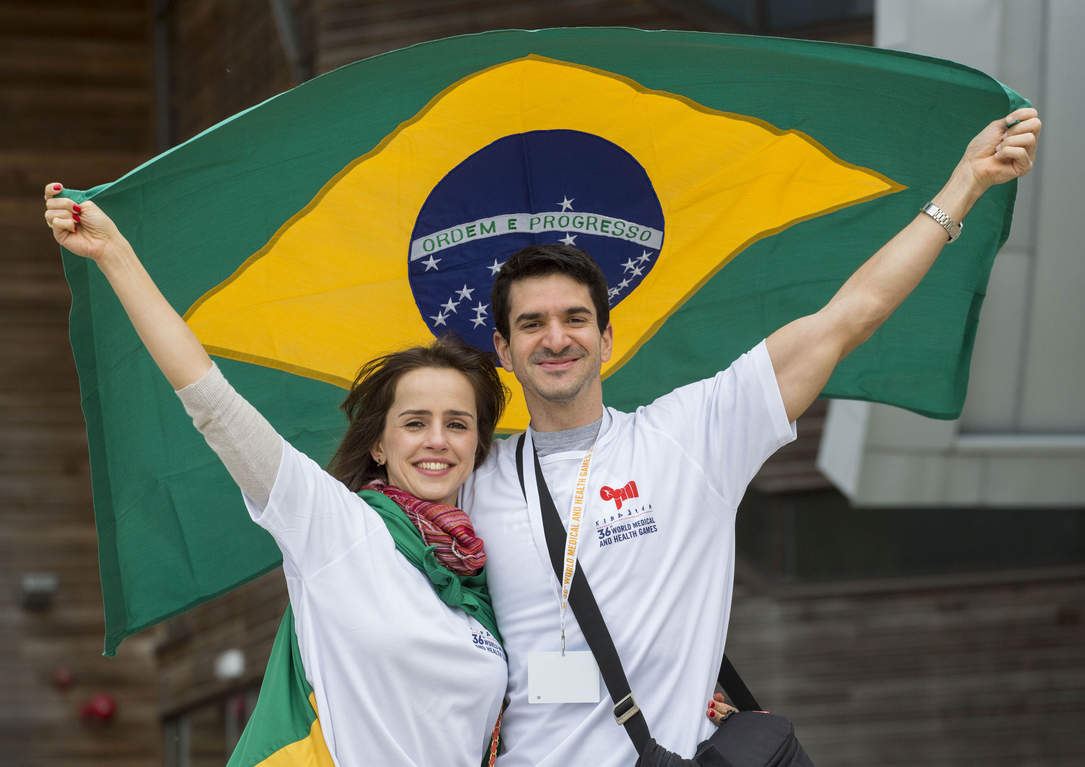 Celebrating the opening Ceremony at the University of Limerick were Team Brazil athletes, Fernando Queiroz and Felipe Camargos. Picture credit: Alan Place/Fusionshooters