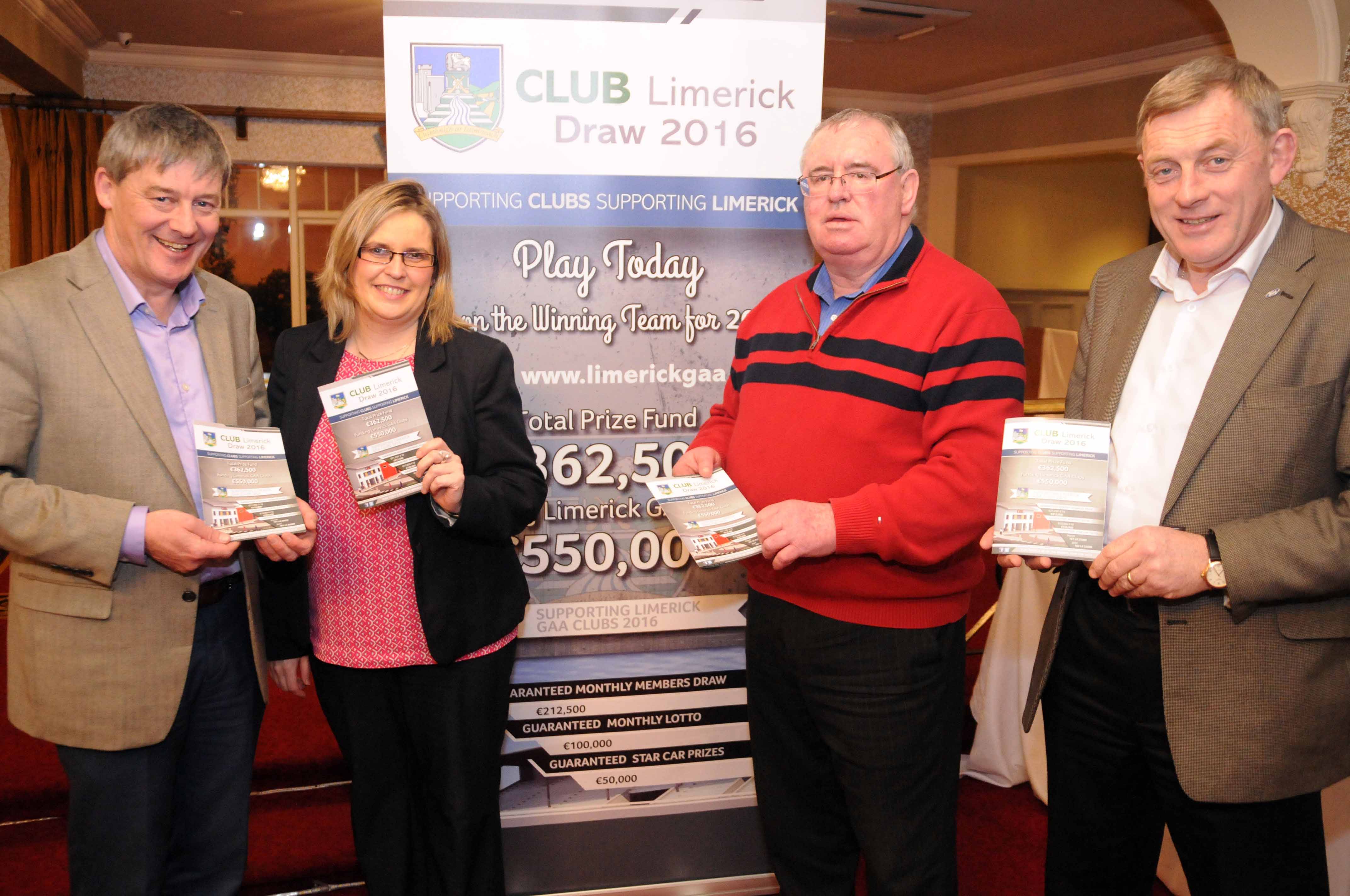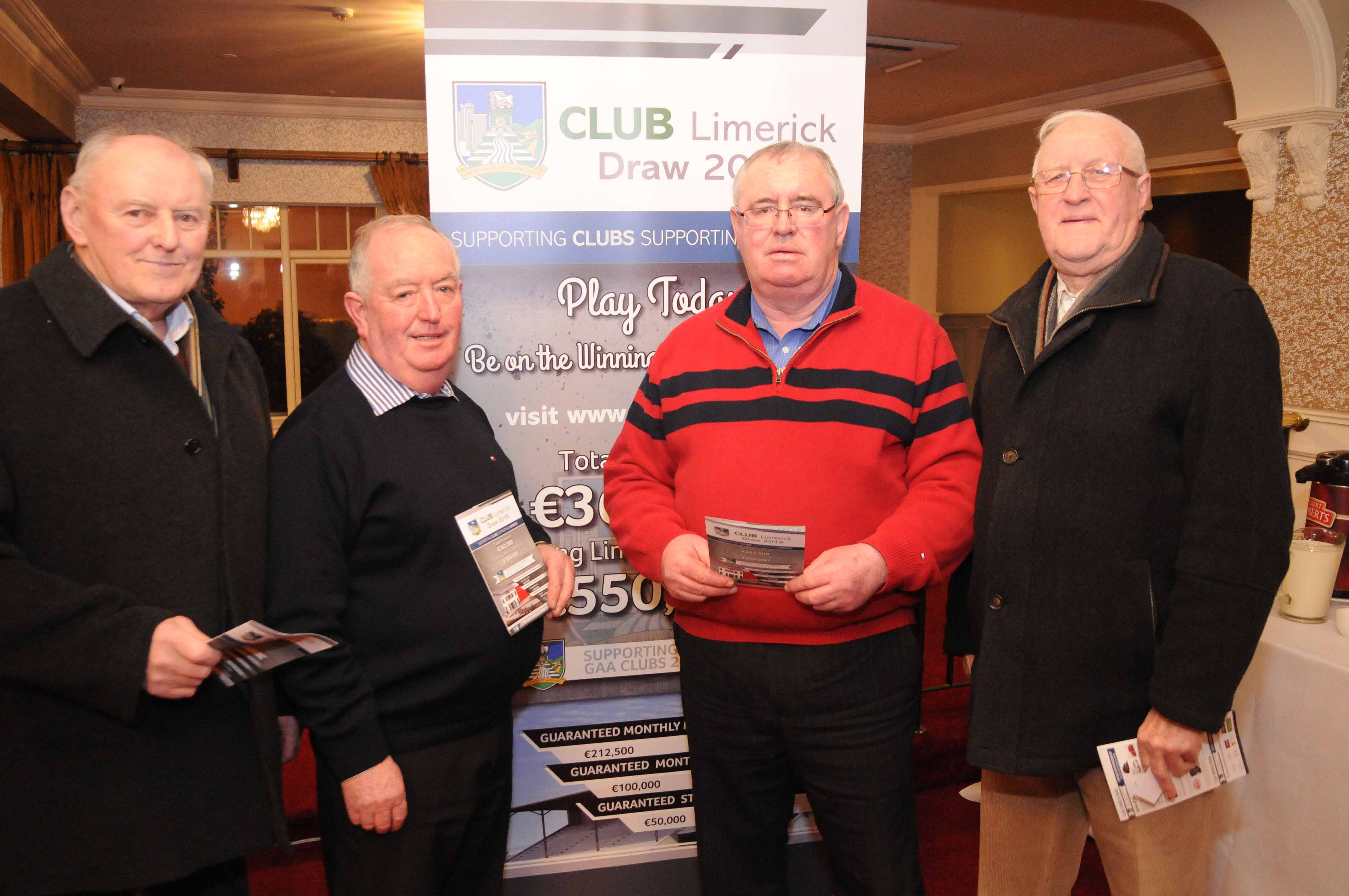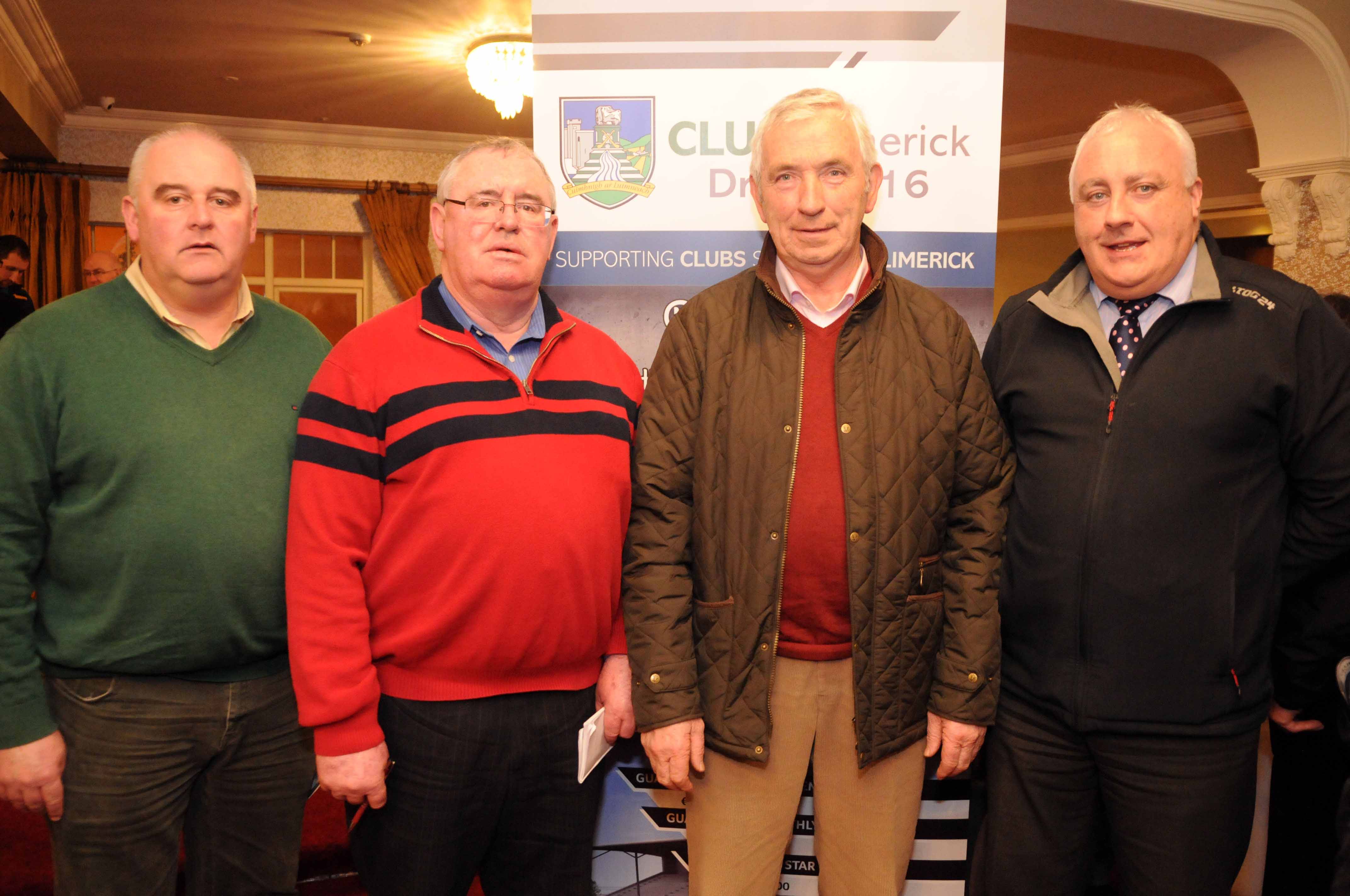 At the launch of the Limerick GAA club draw 2016 in the Woodlands hotel Adare was Micheal Roberts Ballybrown, Tim Ryan Crecora, Oliver Mann Chairman Limerick GAA and Pat Davoren Ballybrown
