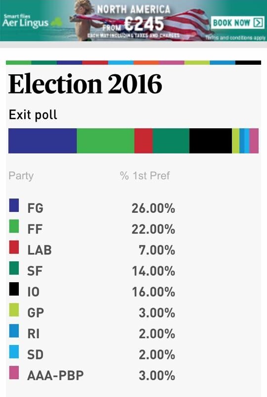 Independents throughout the country would seem to have taken some 16 per cent of the votes cast.