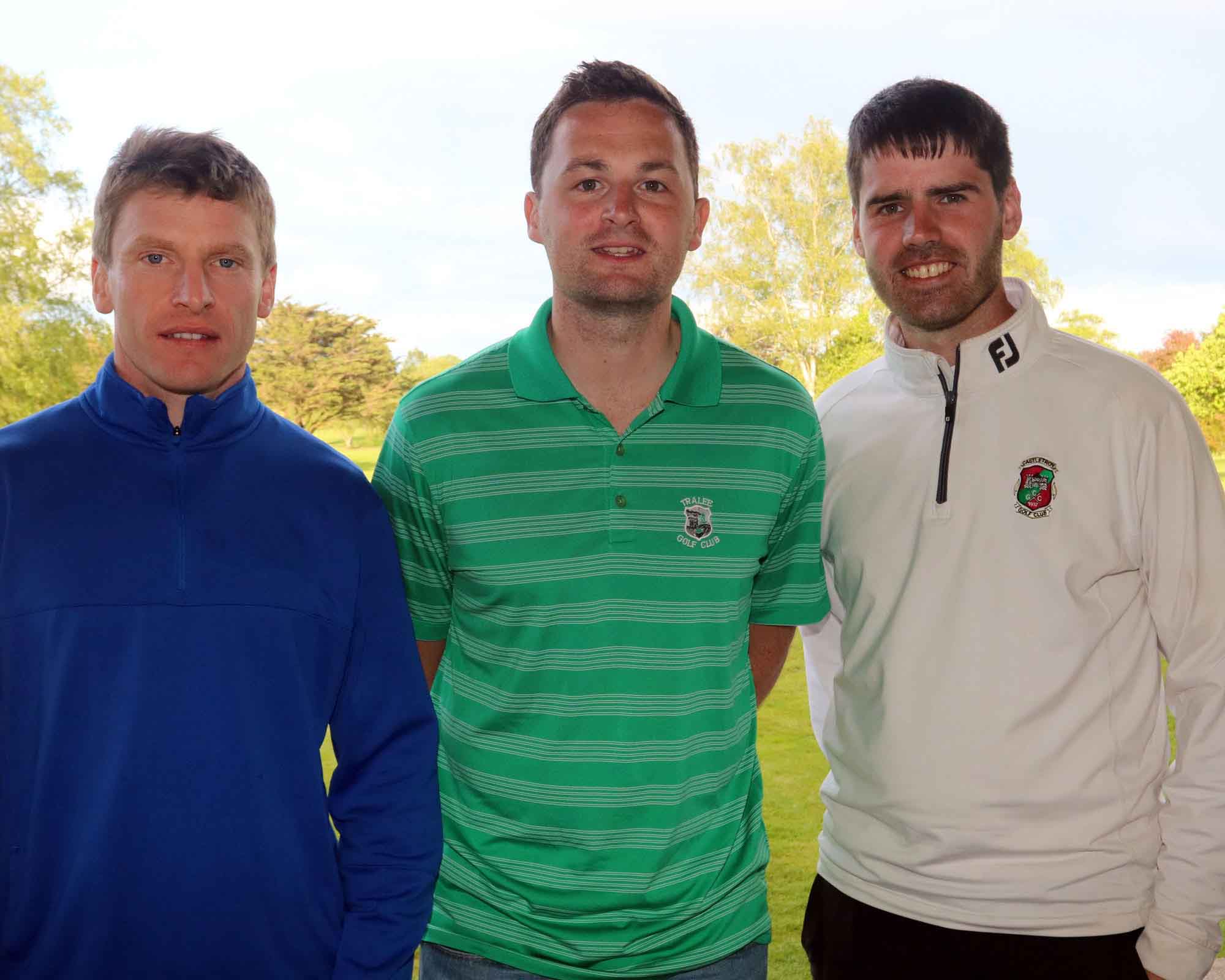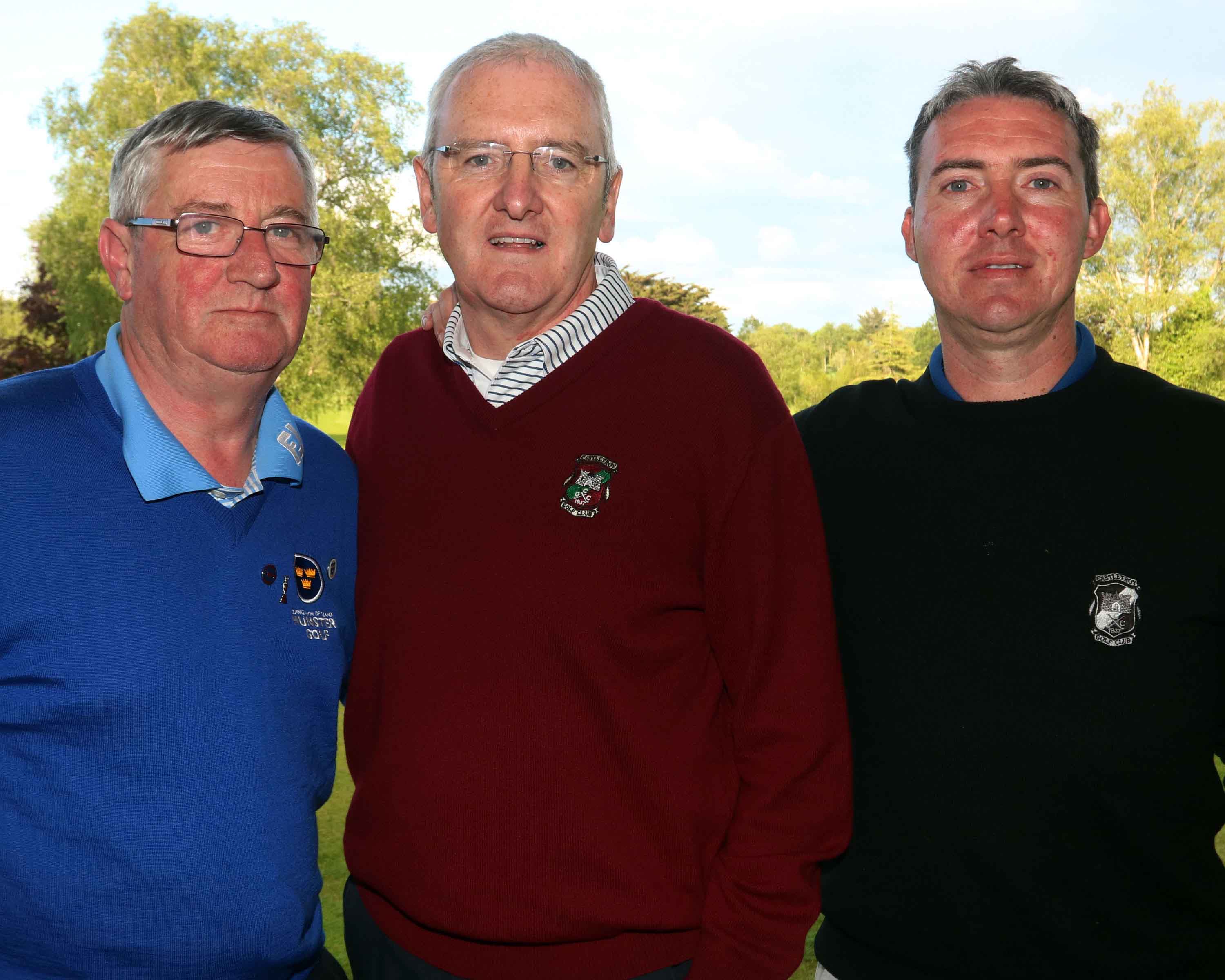 Brian Hurley, Noel Bermingham and Cillian O’Brien, after taking part in the Bank of Ireland Senior Scratch Cup at Castletroy Golf Club .