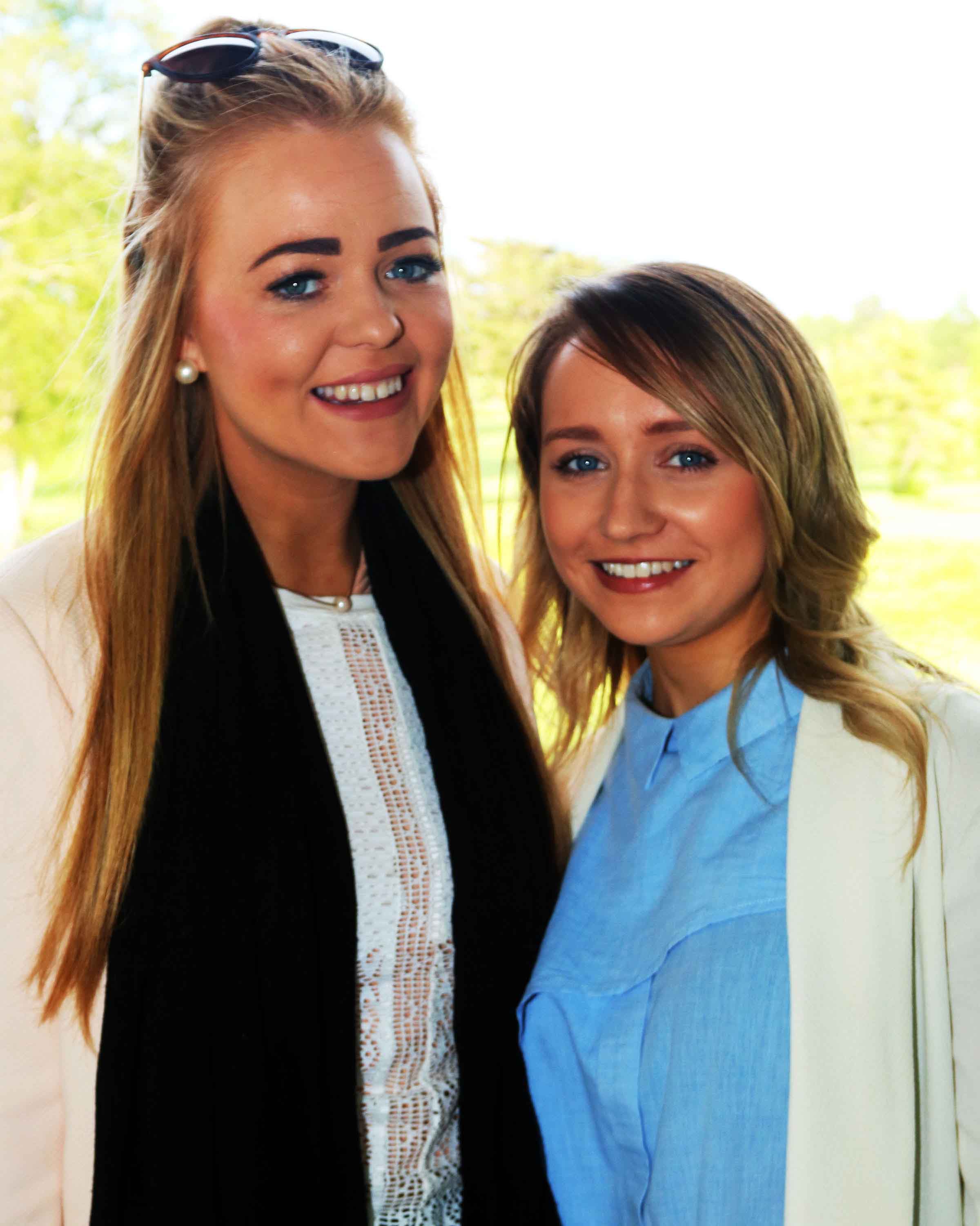 Laura McLillan and Laura Griffin all smiles at the Bank of Ireland Senior Scratch Cup at Castletroy Golf Club .