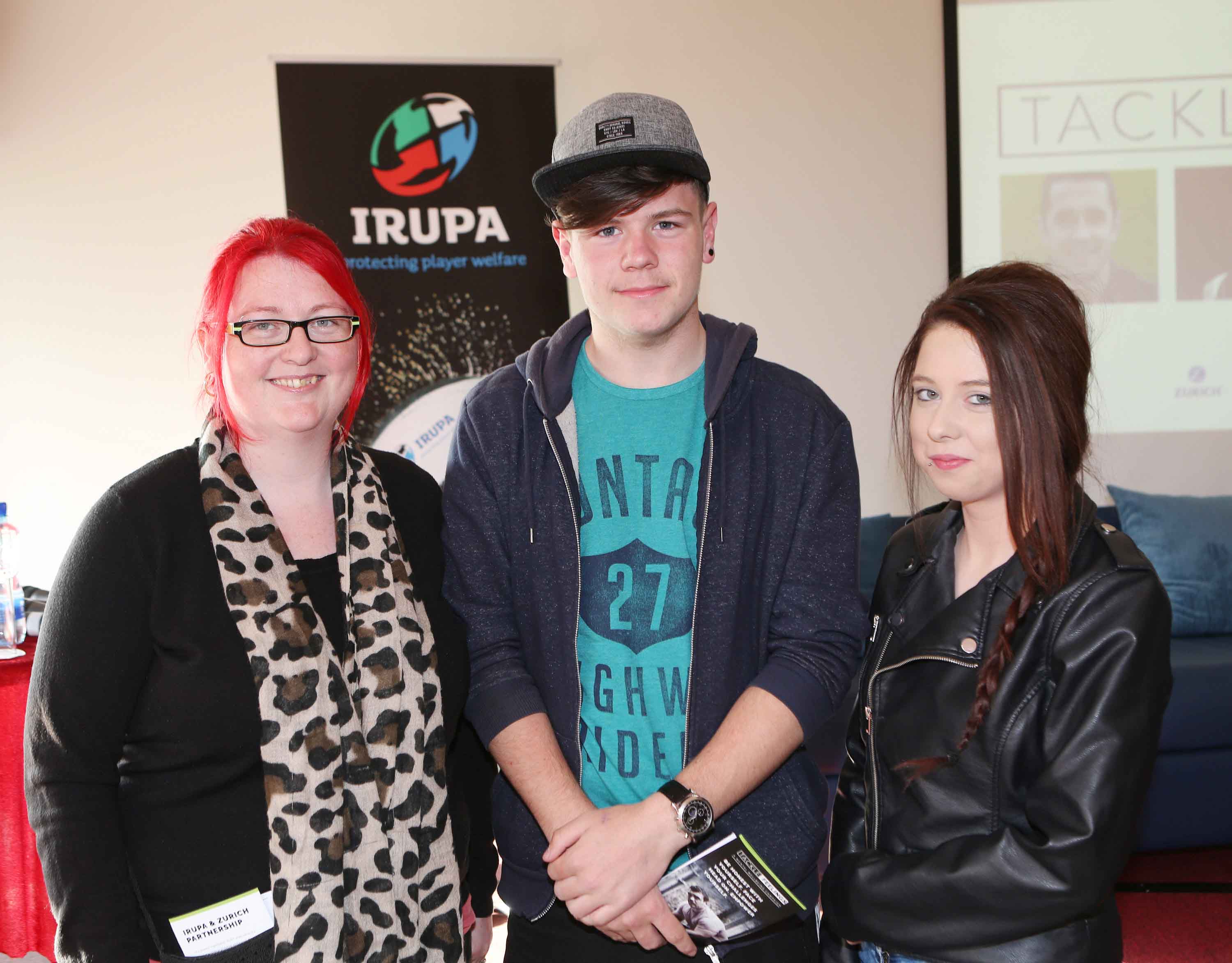 25/5/2016 The Irish Rugby Union Players’ Association (IRUPA) in partnership with Zurich hosted a free mental wellbeing panel discussion as part of its ‘Tackle Your Feelings’ campaign in Thomond Park recently. ‘Tackle Your Feelings’ is an all island mental wellbeing campaign which sees national and international rugby stars come forward to tell their own personal story of the issues they have faced off the pitch. Photographed at the event were Pamela Buckley, Mikey O’Callaghan and Angel Buckley all from Moyross.