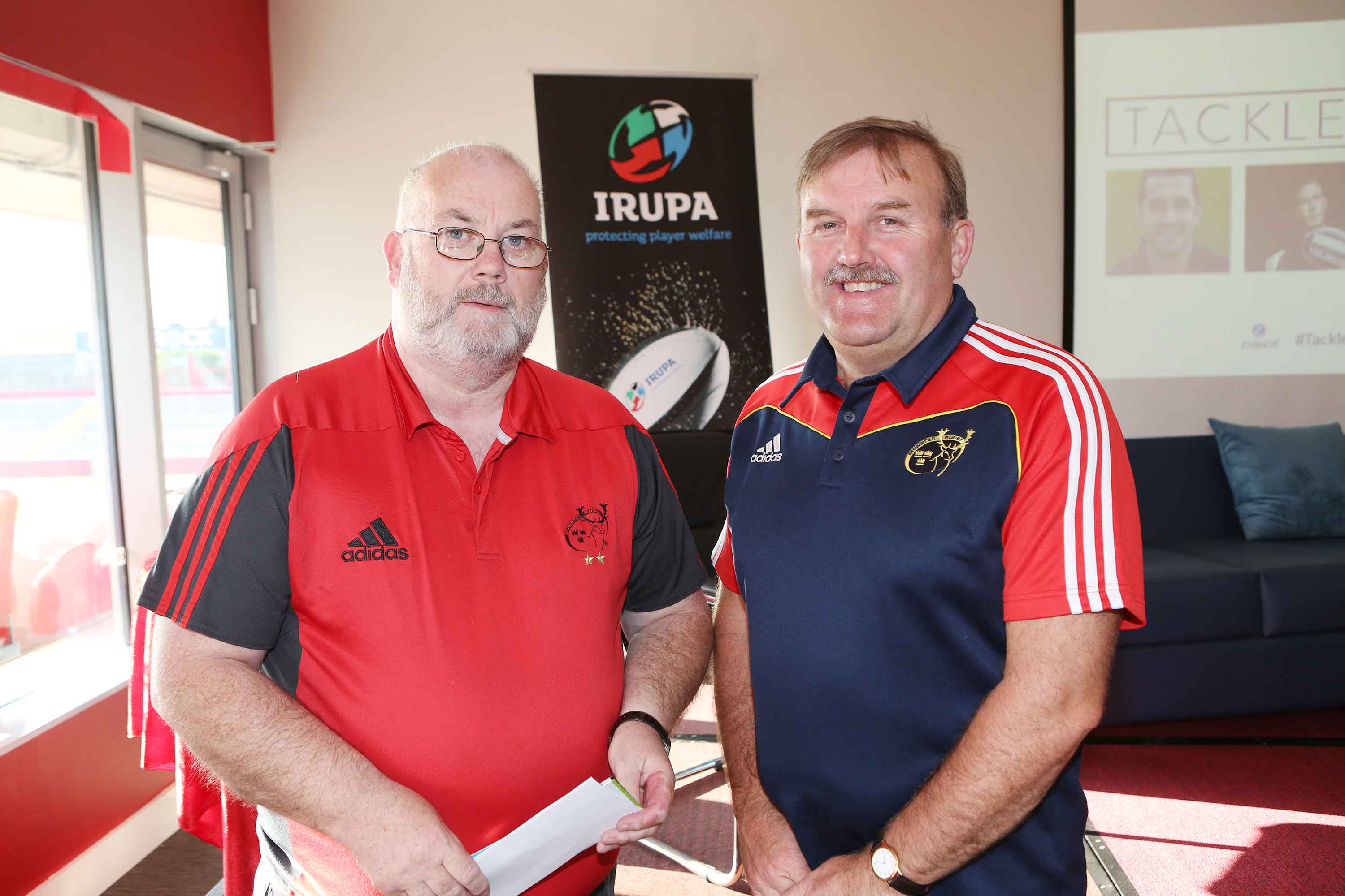 25/5/2016 The Irish Rugby Union Players’ Association (IRUPA) in partnership with Zurich hosted a free mental wellbeing panel discussion as part of its ‘Tackle Your Feelings’ campaign in Thomond Park recently. ‘Tackle Your Feelings’ is an all island mental wellbeing campaign which sees national and international rugby stars come forward to tell their own personal story of the issues they have faced off the pitch. Photographed at the event were Sean Collopy, Parteen, Co Clare and Ger Hobbs, Ashbrook, Limerick.
