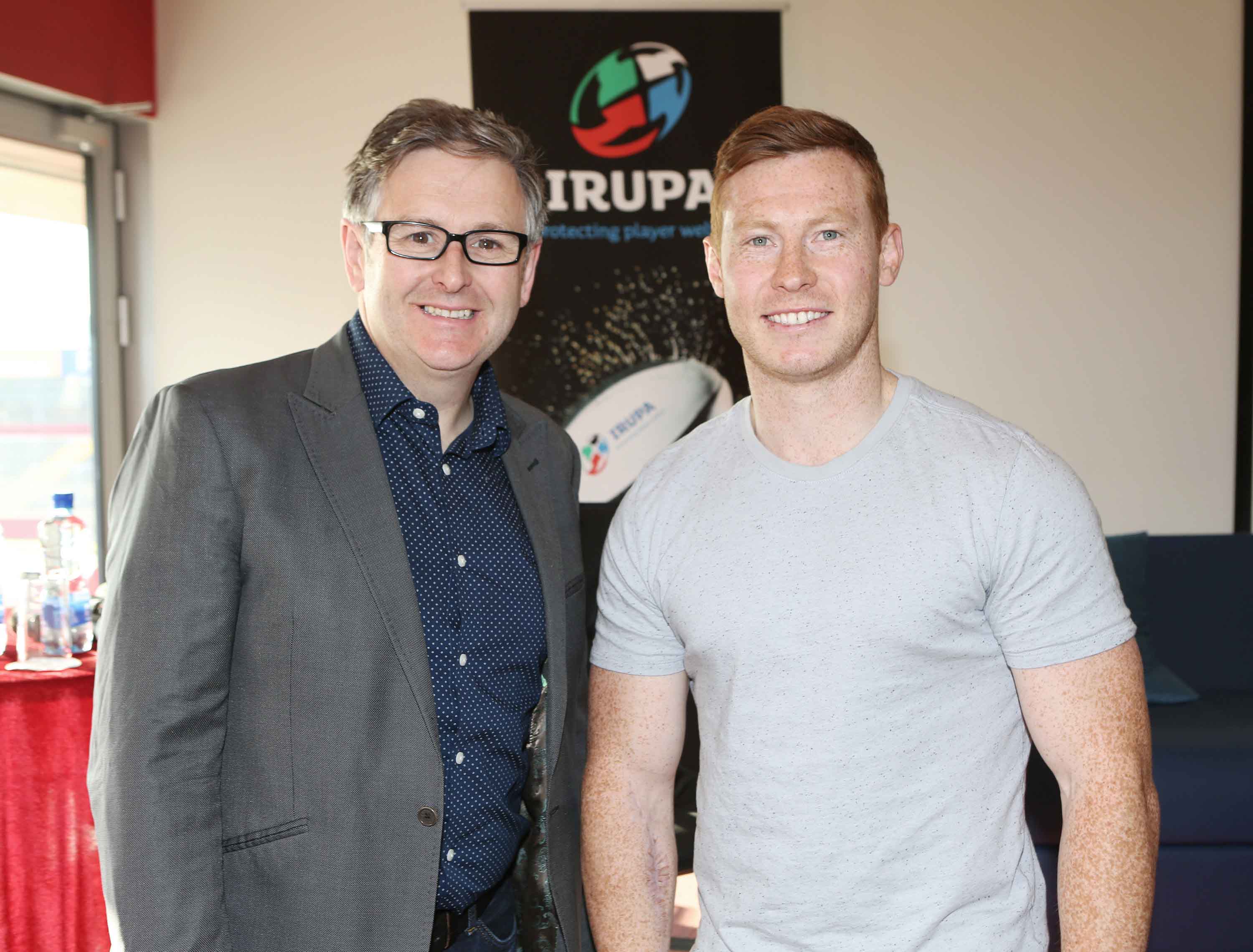 25/5/2016 The Irish Rugby Union Players’ Association (IRUPA) in partnership with Zurich hosted a free mental wellbeing panel discussion as part of its ‘Tackle Your Feelings’ campaign in Thomond Park recently. ‘Tackle Your Feelings’ is an all island mental wellbeing campaign which sees national and international rugby stars come forward to tell their own personal story of the issues they have faced off the pitch. Photographed at the event were Dr. Eddie Murphy, Clinical Psychologist and Tackle Your Feelings Advisor and Cathal Sheridan, rugby player and Tackle Your Feelings Ambassador.