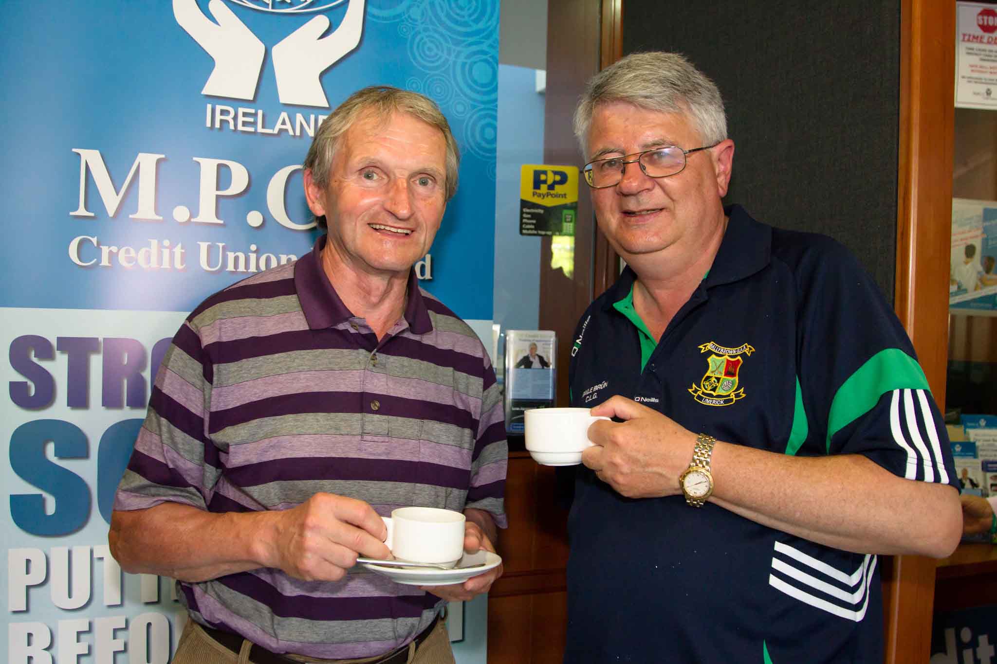 John Loftus, Commercial Manager, Limerick GAA with Tim Ryan, Vice-Chairperson, MPCC. MPCC (Mungret, Patrickswell, Clarina & Crecora) Credit Union social with local clubs Patrickswell and Ballybrown. Limerick Senior Hurling Championship Sponsorship 2016. 01/06/2016.