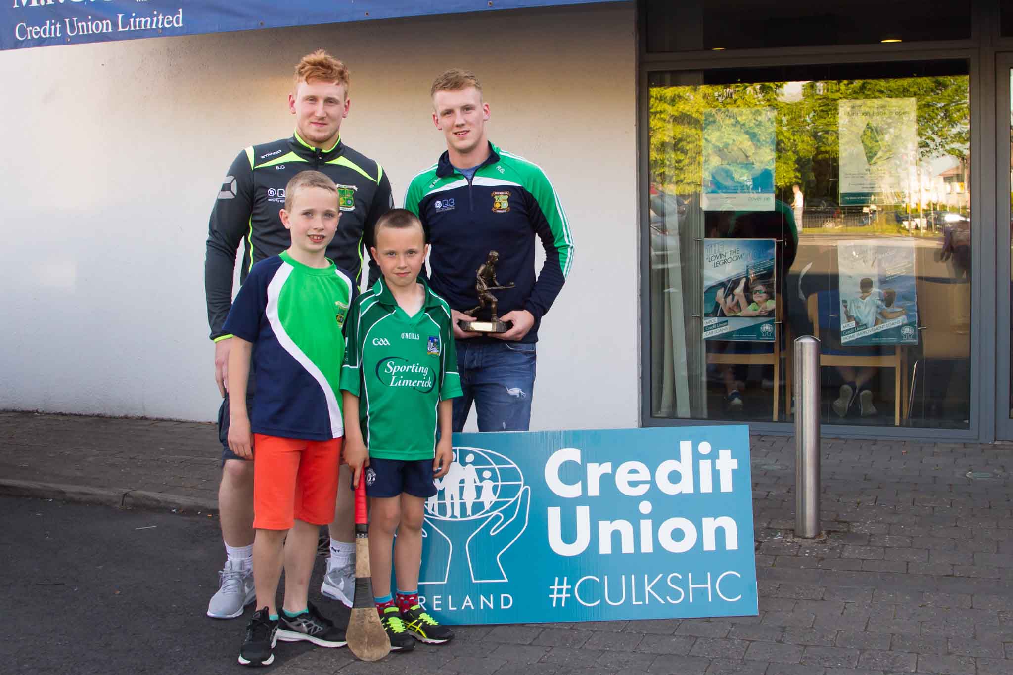 The Announcement of the Caherdavin Credit Union supporting Na Piarsaigh GAA Club with Members of the Caherdavin Credit Union , Caherdavin Boys School and Members of Na Piarsaigh, Kevin Downes, Alan Dempsey, Kevin Ryan, Oliver Mann GAA Chairman at Caherdavin Credit Union .