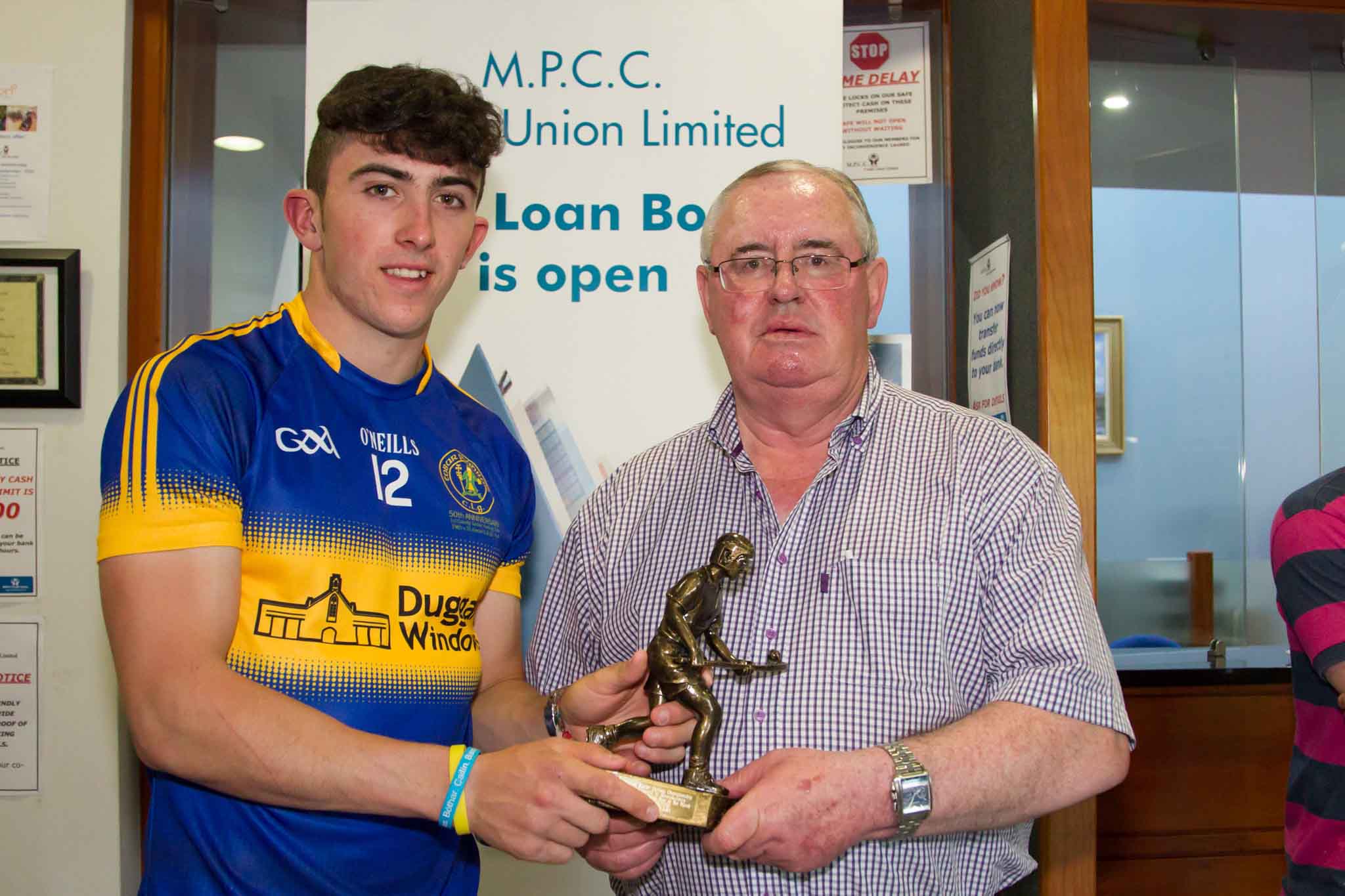Aaron Gillane of Patrickwell receives man of the match award from MPCC’s Vice-Chairman. Tim Ryan. MPCC (Mungret, Patrickswell, Clarina & Crecora) Credit Union social with local clubs Patrickswell and Ballybrown. Limerick Senior Hurling Championship Sponsorship 2016. 01/06/2016.