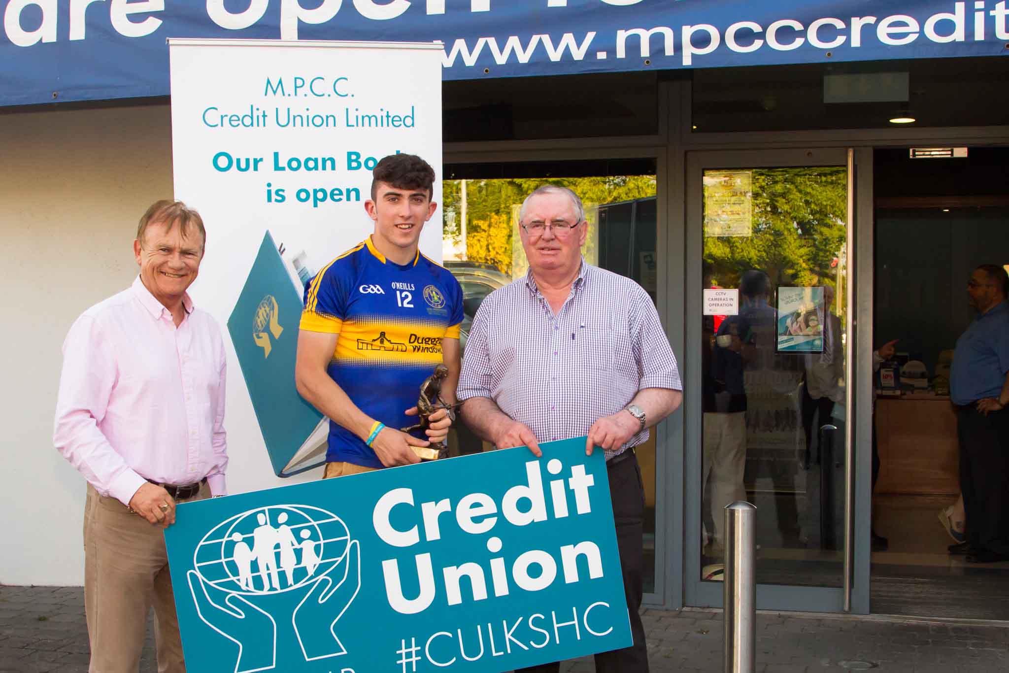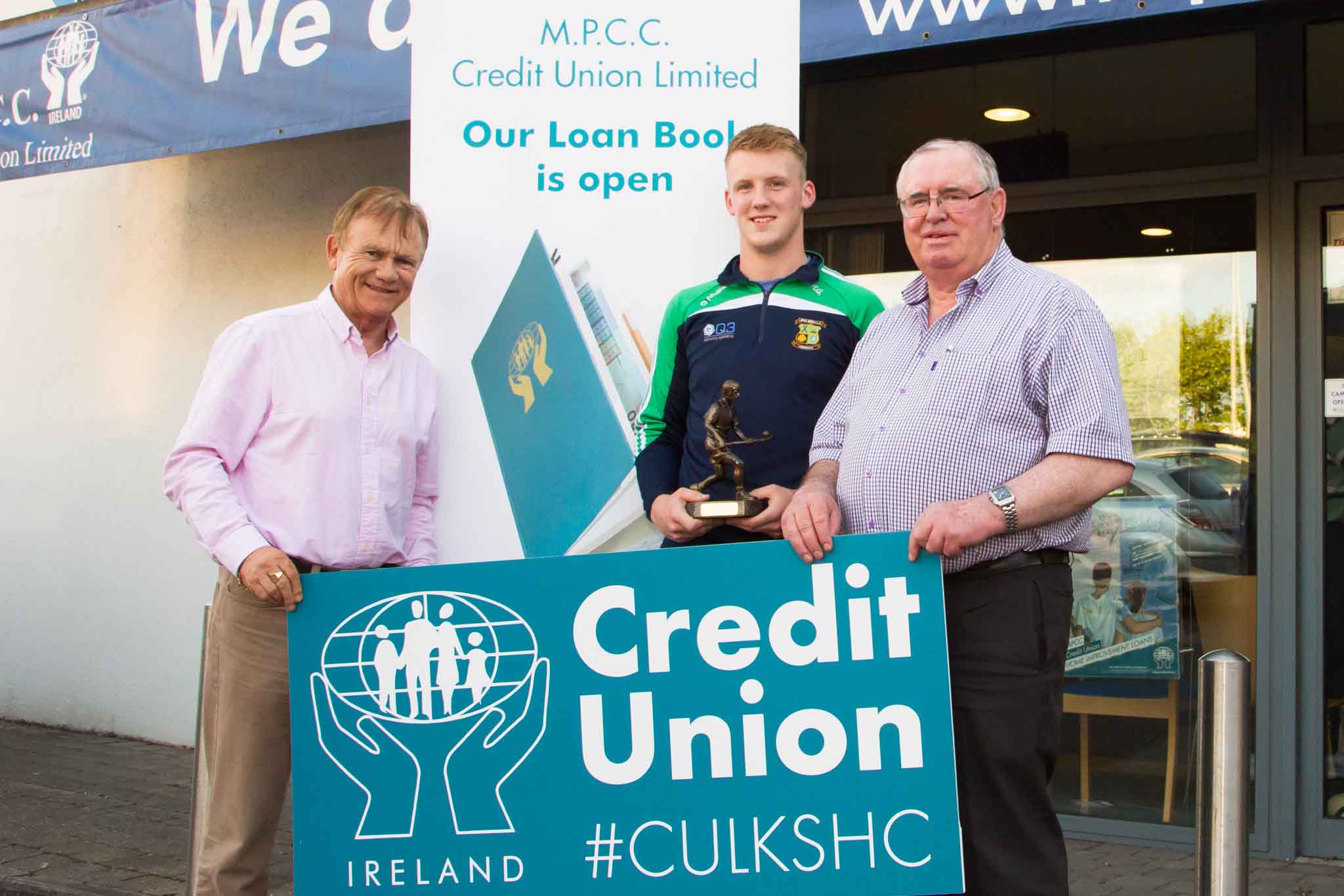 John Loftus, Commercial Manager, Limerick GAA, Aaron Gillane of Patrickswell and Tim Ryan, Vice-Chairperson, MPCC.MPCC (Mungret, Patrickswell, Clarina & Crecora) Credit Union social with local clubs Patrickswell and Ballybrown. Limerick Senior Hurling Championship Sponsorship 2016. 01/06/2016.