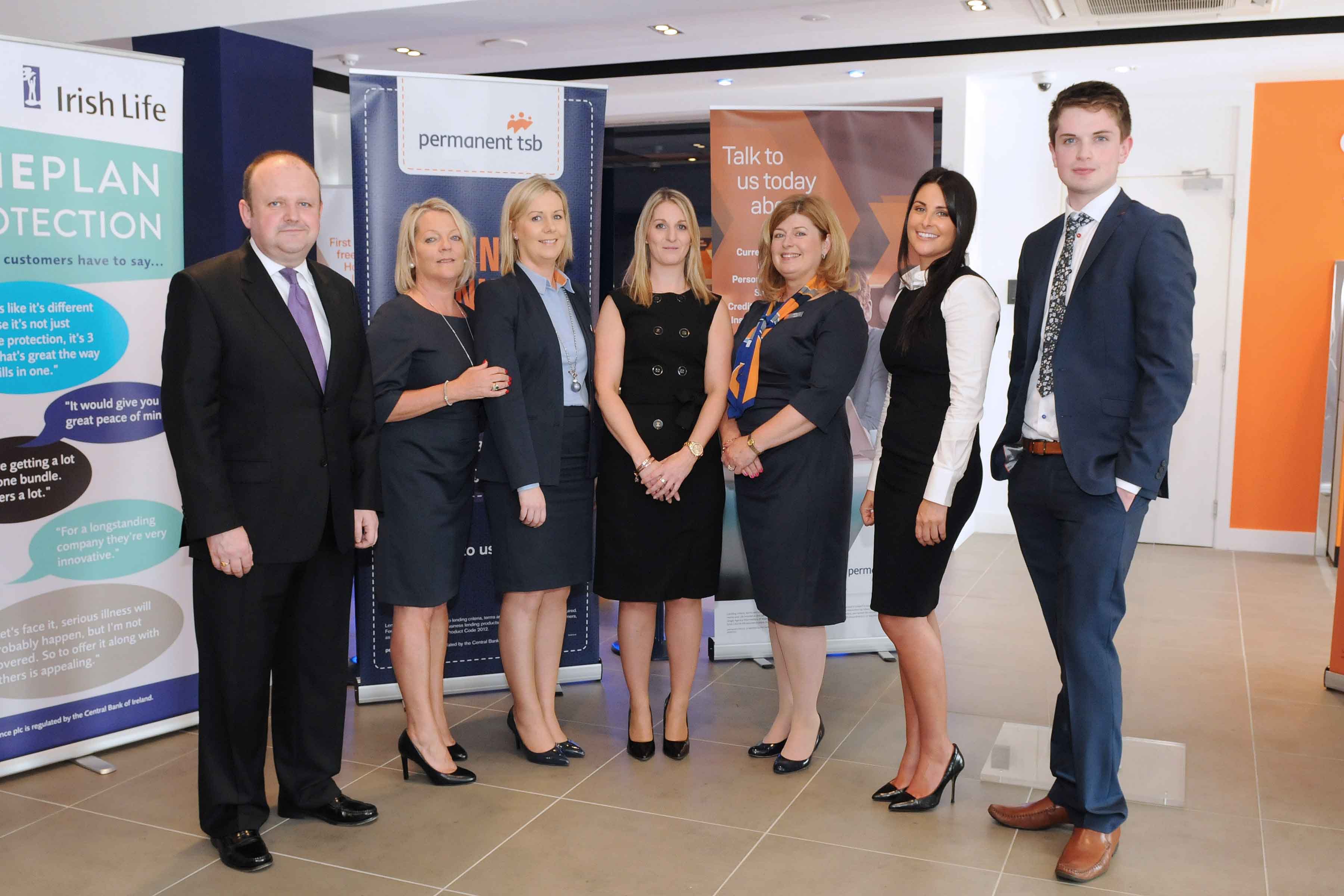 7/7/2016 Attending the opening of Permanent TSB, University Court, Castletroy were John Quinlivan, Jane O’ Donovan, Tracy Kelly, Noelle O’ Shea, Branch Manager, Karan O’ Toole, Laura Pond, Assistant Manager and Andrew O’ Connor, PTSB.