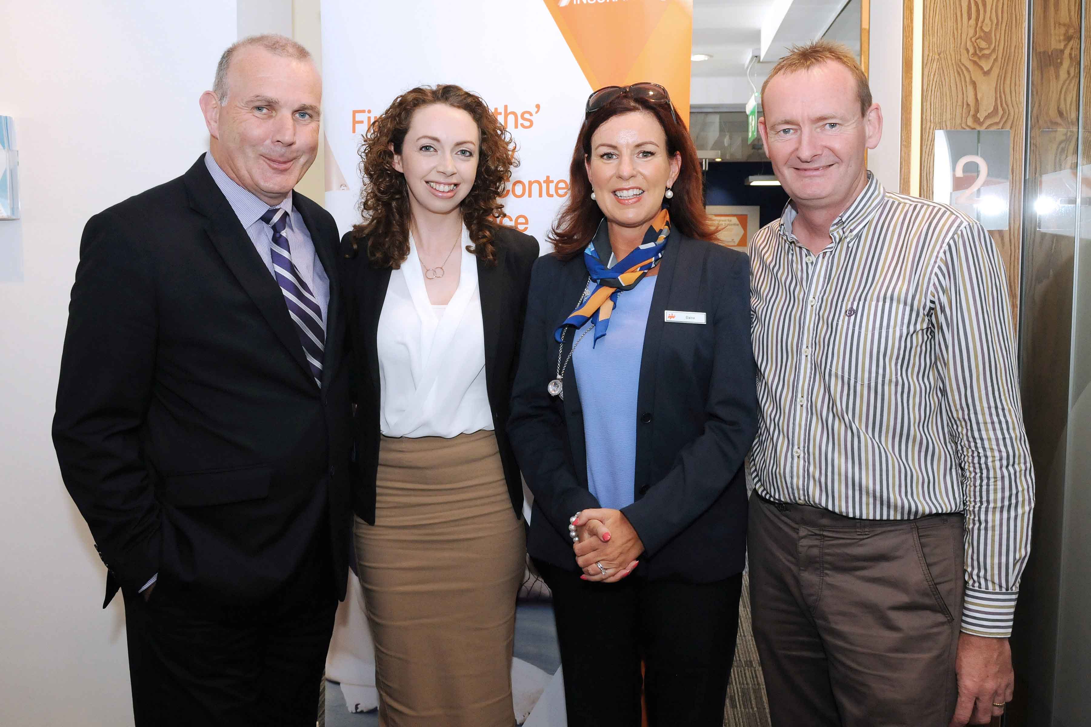 7/7/2016 Attending the opening of Permanent TSB, University Court, Castletroy were Fergus Dunne, Business Development Manager Irish Life, Niamh Gillespie, Irish Life Consultant, Elaine O’ Dell, PTSB O’ Connell Street and George McGrath, 20K.ie.