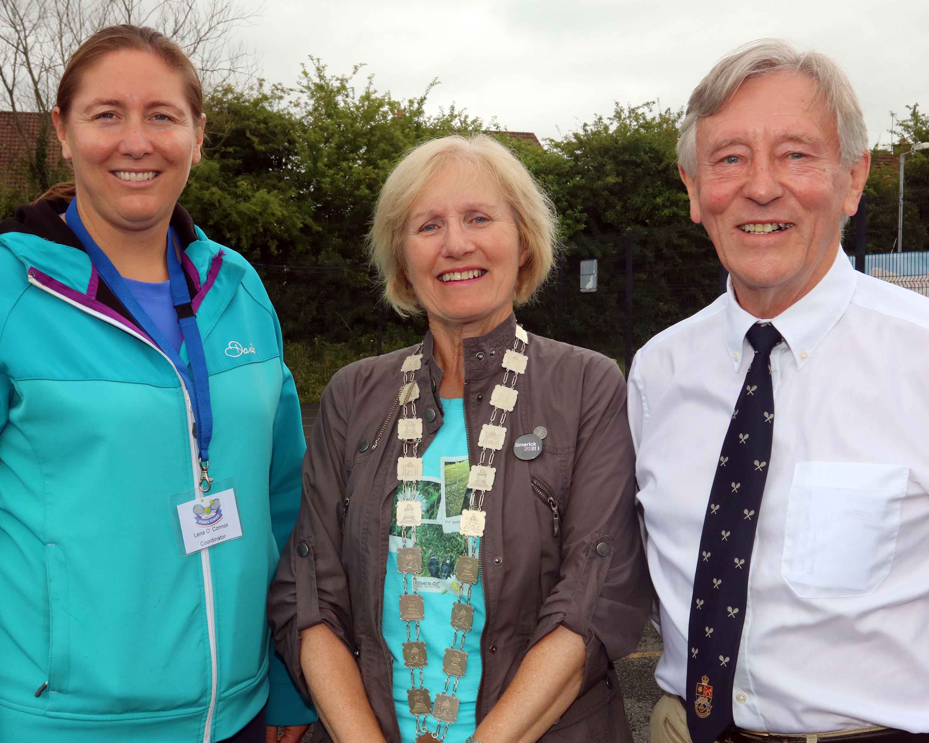 Lena O’Connor, Deputy Mayor, Marian Hurley with Jim Upton at the Maxol Tennis Camps at Castletroy College.