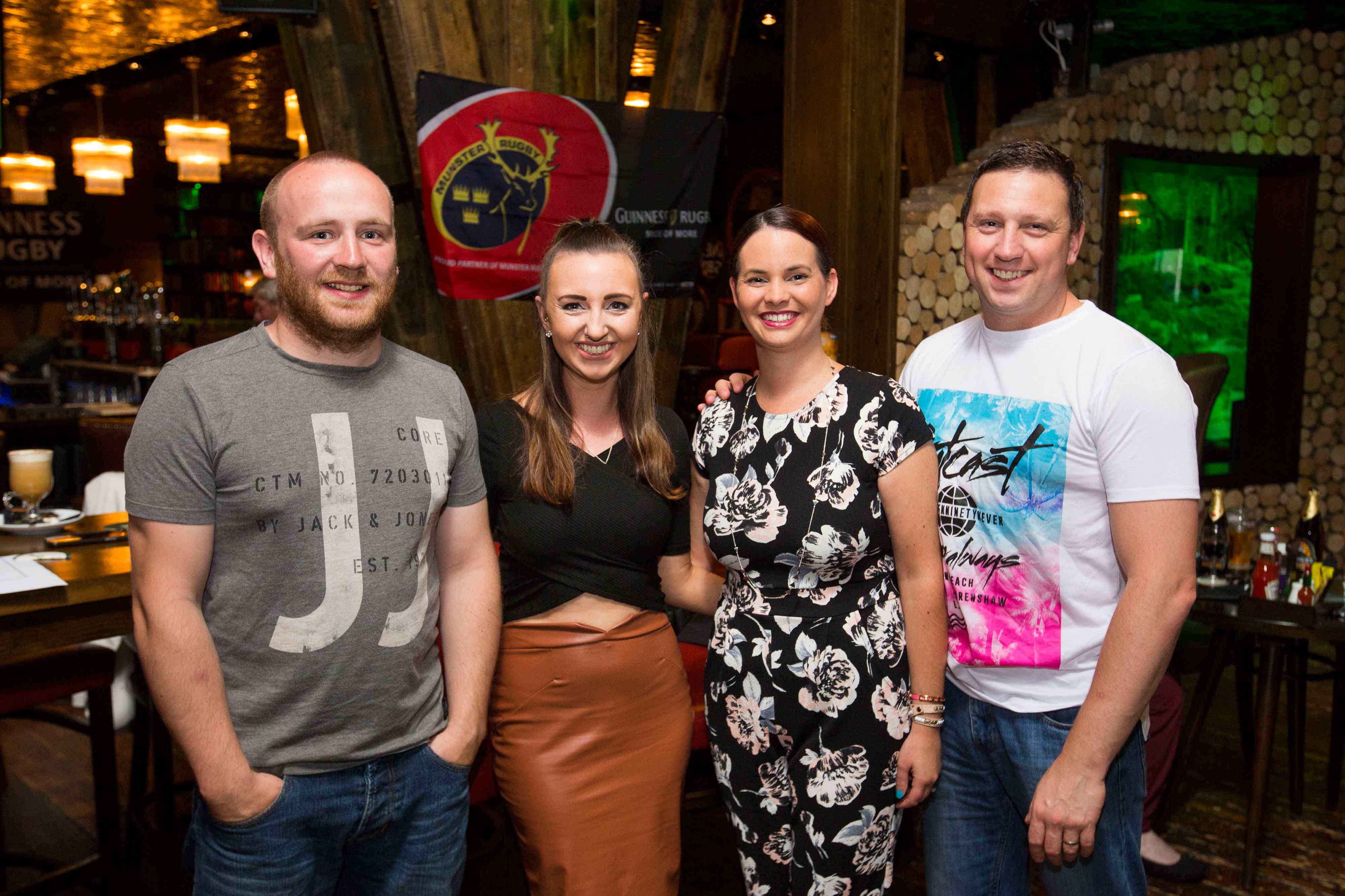 Pictured from left: Colm Moloney, Limerick, Kelly Moran, Limerick and Chris Kirby, Limerick and Tiffany Glenn, Colorado before the table quiz.