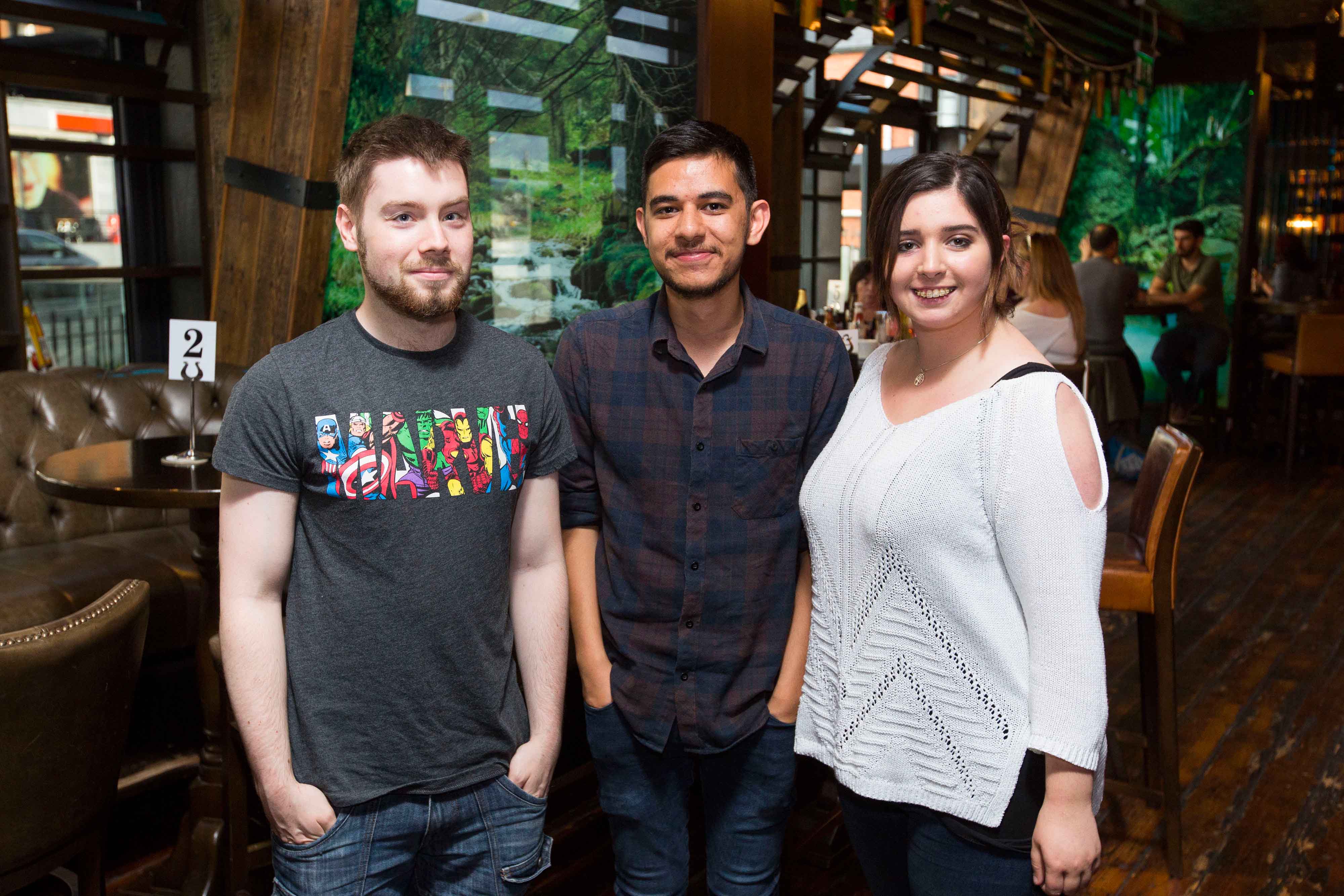 Pictured from left: Kevin Clancy, Claires Wish and Leon Anderson, MC before the table quiz.