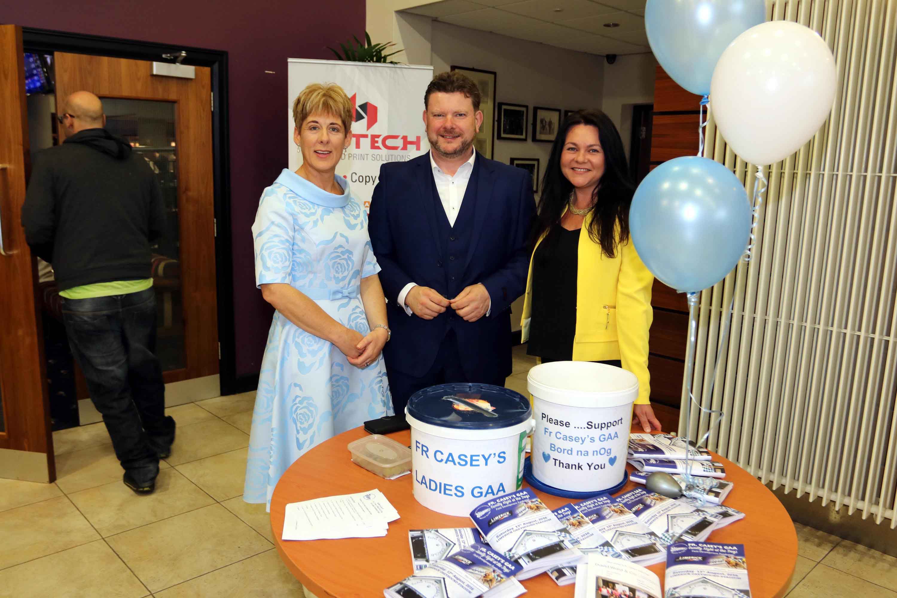 Brigid Daughton, Maurice O’Connell and Louise Riordan, supporting and raising Funds for Fr Casey’s GAA Greyhound Night.