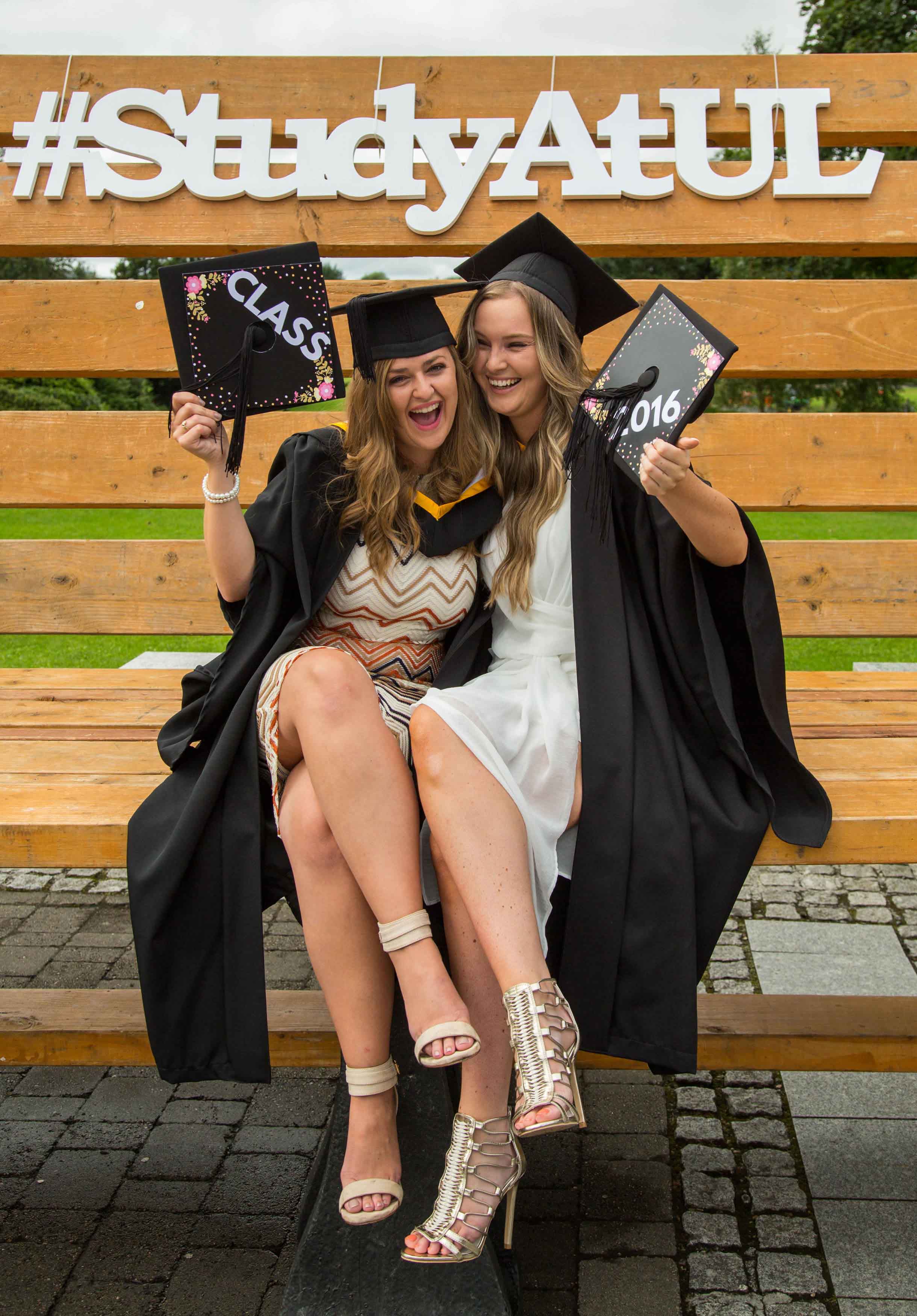 Attending the conferring ceremony were Bachelor of Arts in Psychology and Sociology graduates, Jessica Reilly, Carbury Co. Kildare and Kate Gorey, Ennis Road, Limerick. Picture: Alan Place.