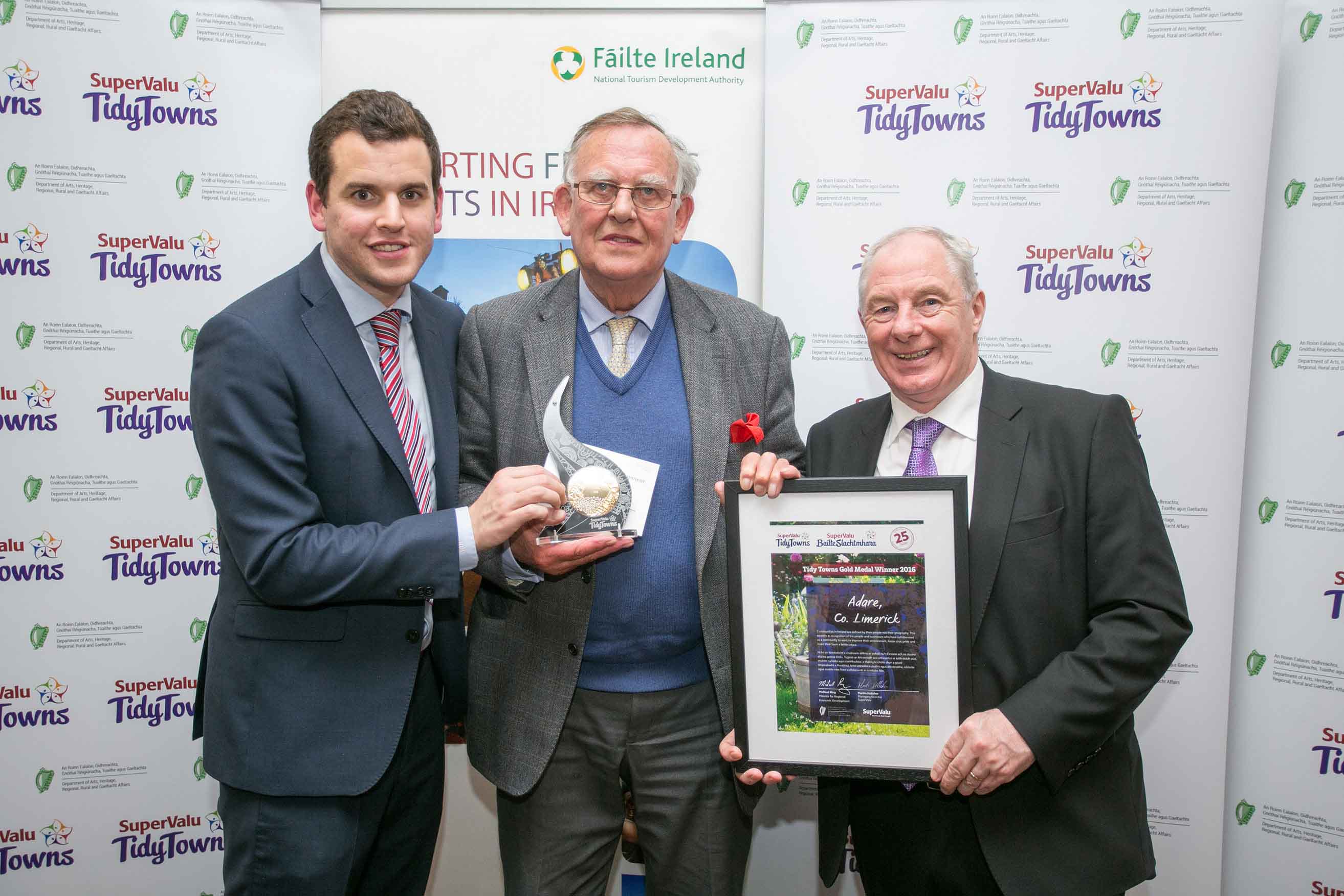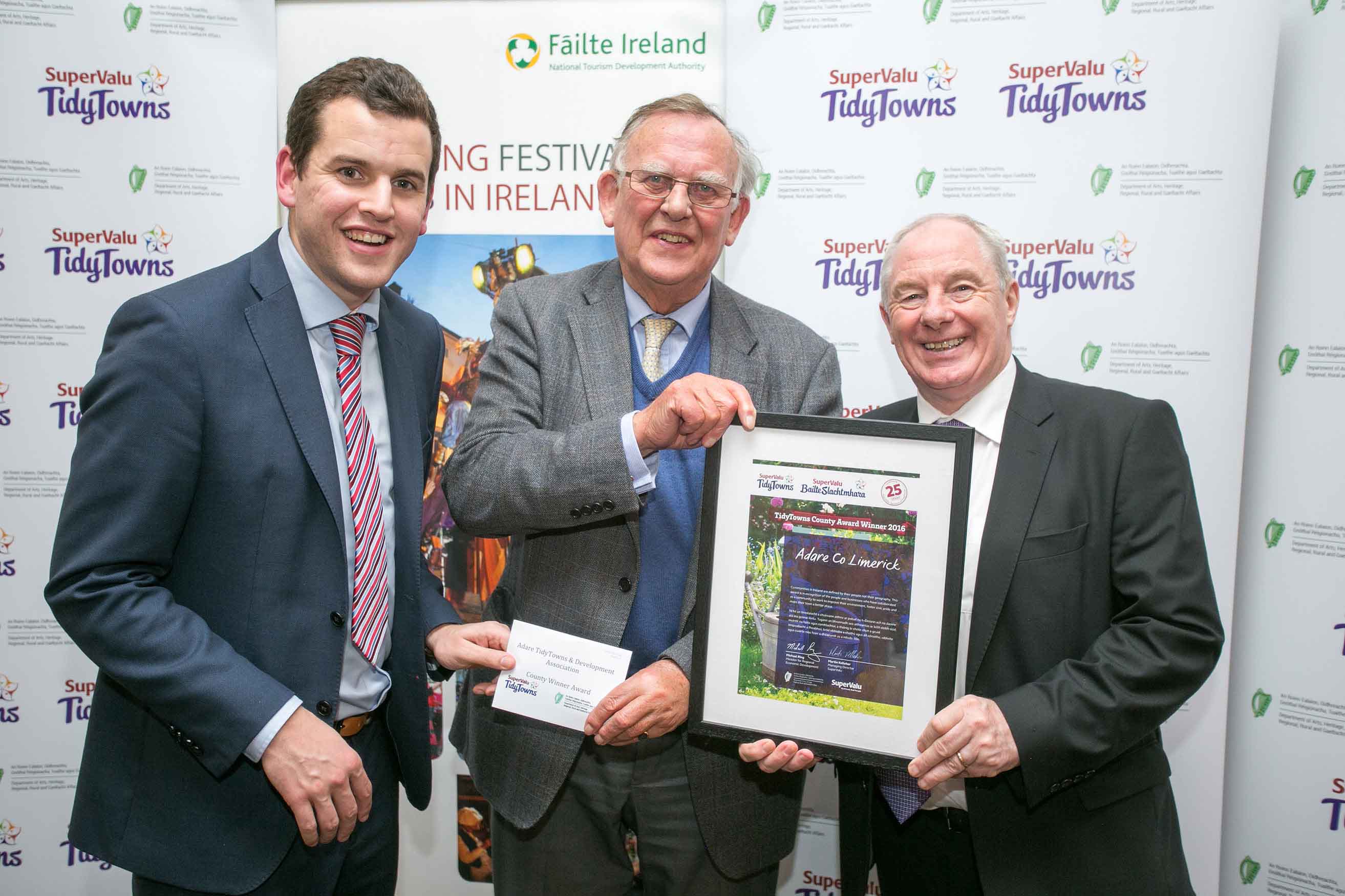County Highly Commended and Commended, L-R Niall O’Callaghan, SuperValu, George Stackpoole, Adare Co Limerick and Michael Ring TD, Minister of State for Regional Economic Development.Pic Arthur Ellis.