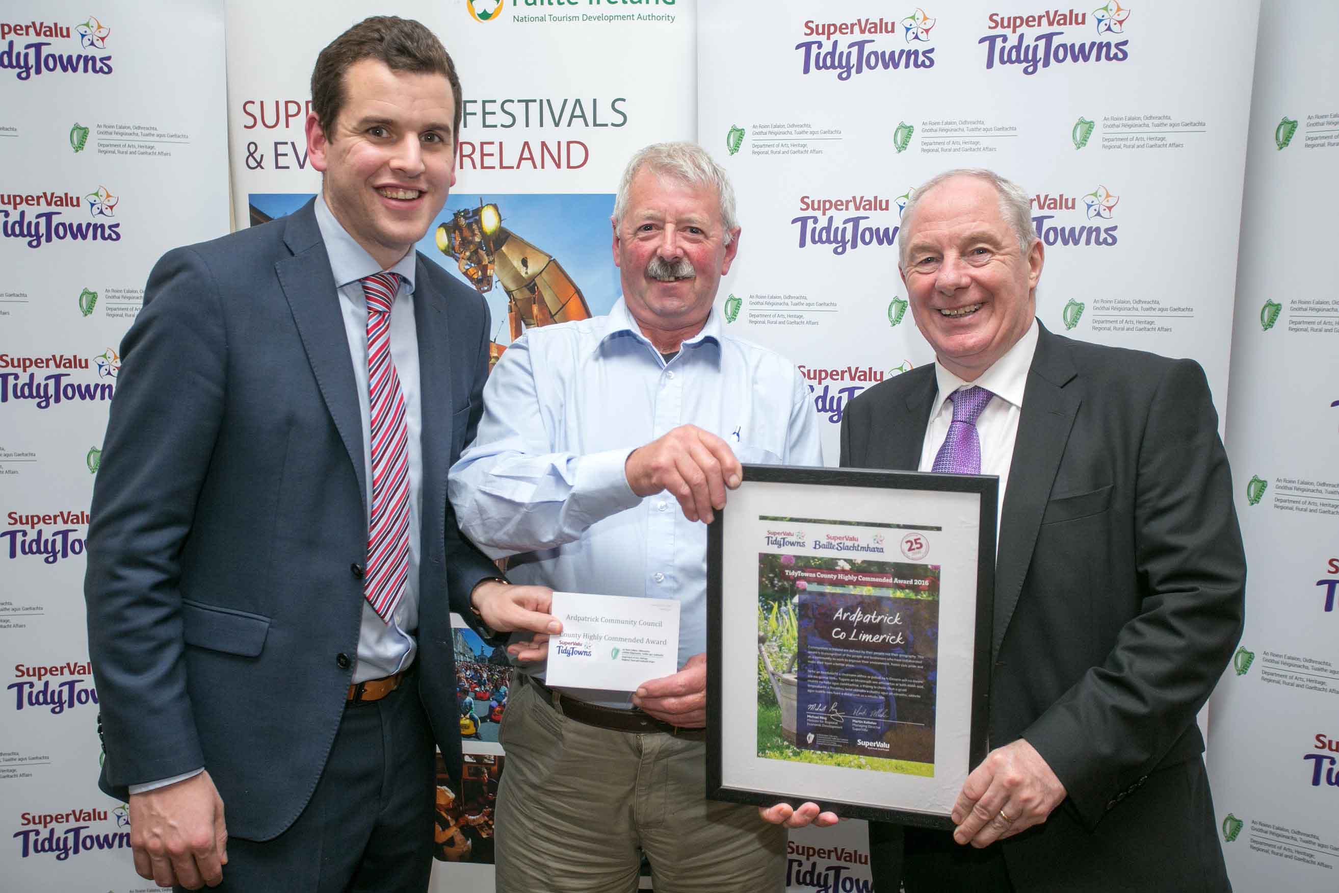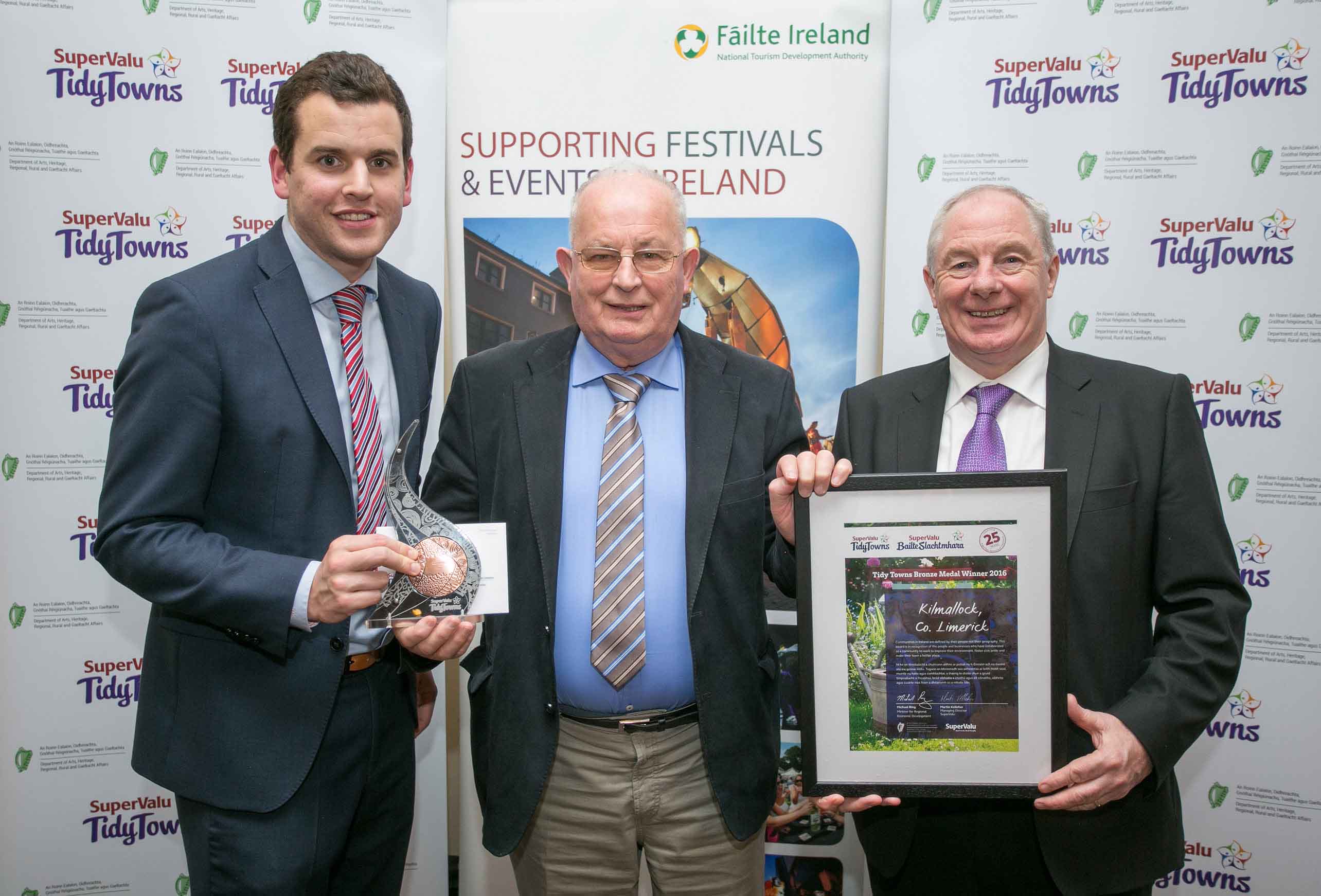 County Highly Commended and Commended, L-R Niall O’Callaghan, SuperValu, Dan Cronin, Galbally Co Limerick and Michael Ring TD, Minister of State for Regional Economic Development.Pic Arthur Ellis.