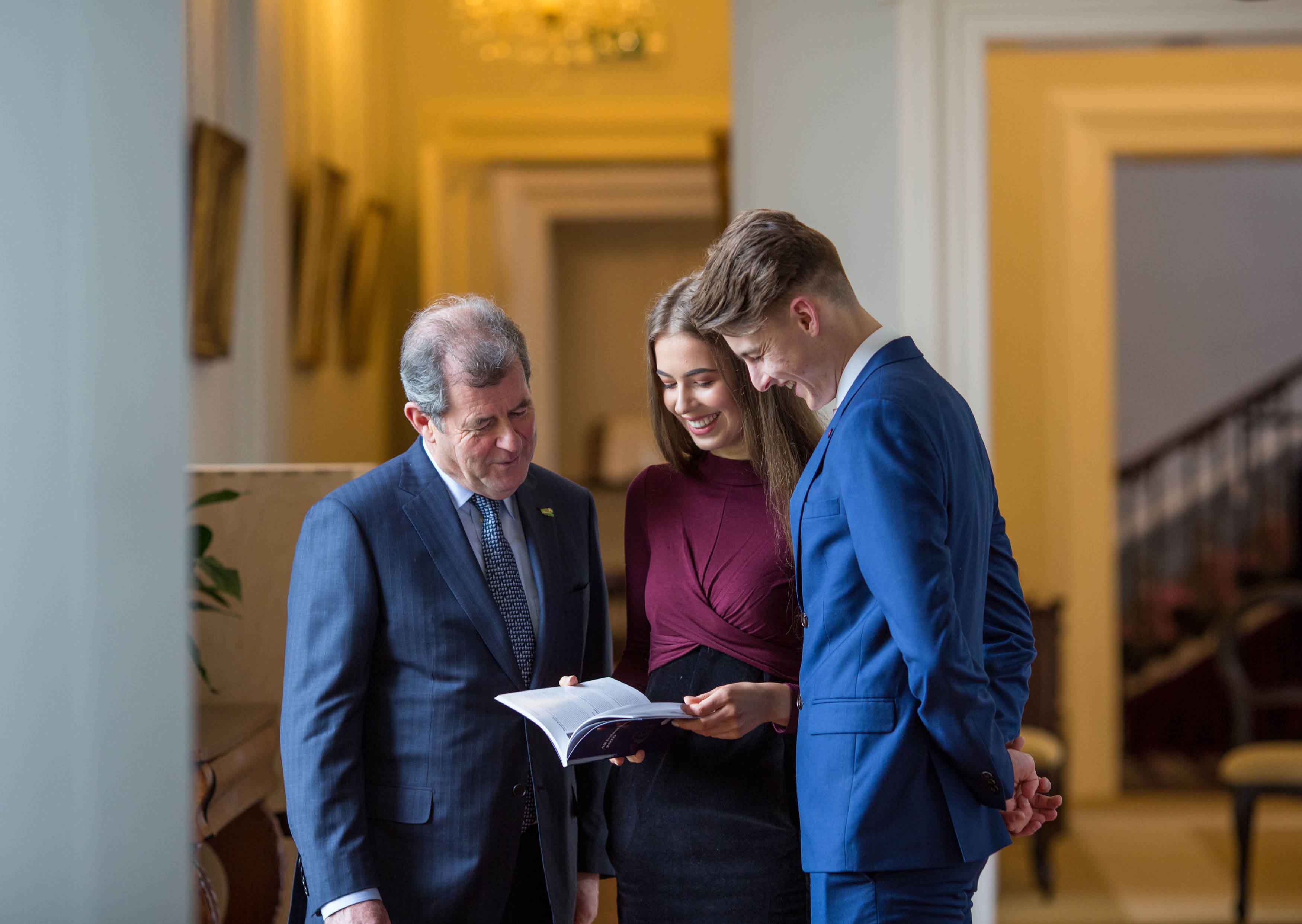 Attending the awards ceremony were, JP McManus with scholarship recipients, Chloe Carrick, Ballinasloe Co. Galway and Conor Gaffney, Wexford Town. Picture: Alan Place