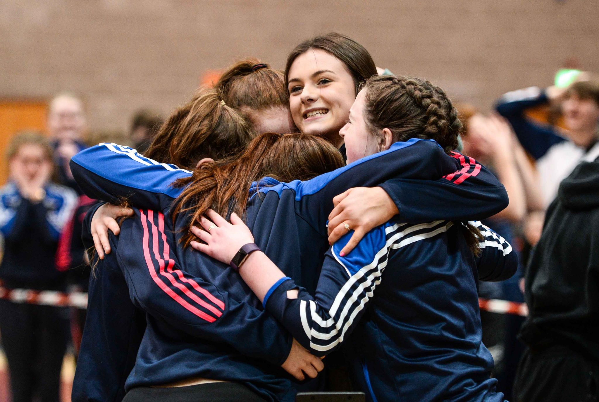 Salesian College, Pallaskenry, Co. Limerick, students Orlaith Maher, Alison Coffey, Ailsing McGuinness, Michelle O’Keeffe, and Megan Browne celebrate after winning their event during the Limerick Sports Partnership / Rowing Ireland inaugural indoor rowing blitz at the University of Limerick, Limerick.