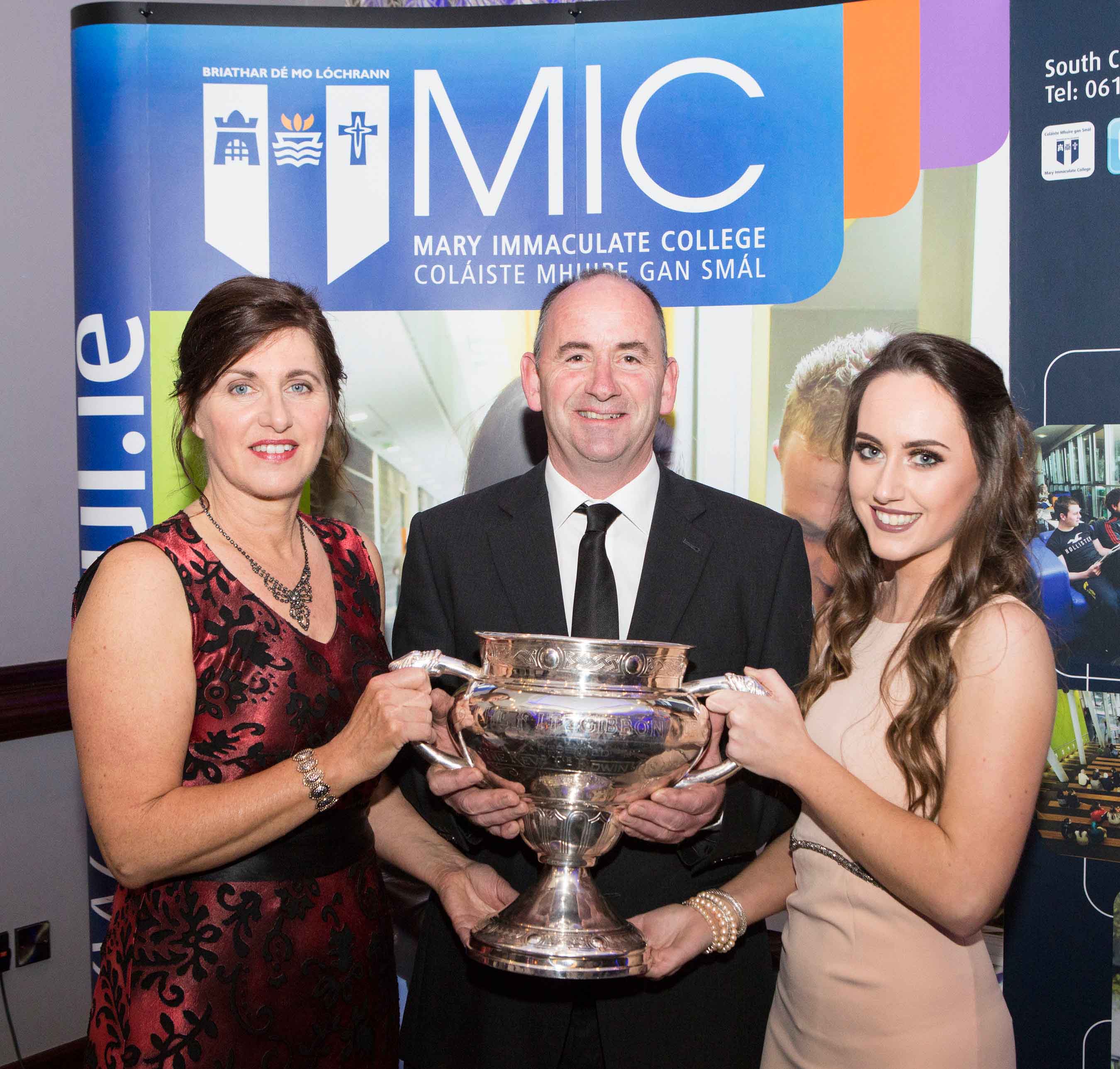 Repro Free. Pictured at the Mary Immaculate College Fitzgibbon Cup Celebration Dinner, held in the Castletroy Park Hotel, on Monday 3 April were Deirdre, Ger and Niamh Fitzgibbon from Cork. Niamh, is a 4th year B Ed (Primary Teaching) student at MIC is a great grandniece of Fr Tom Fitzgibbon, whom the Fitzgibbon cup is named after.