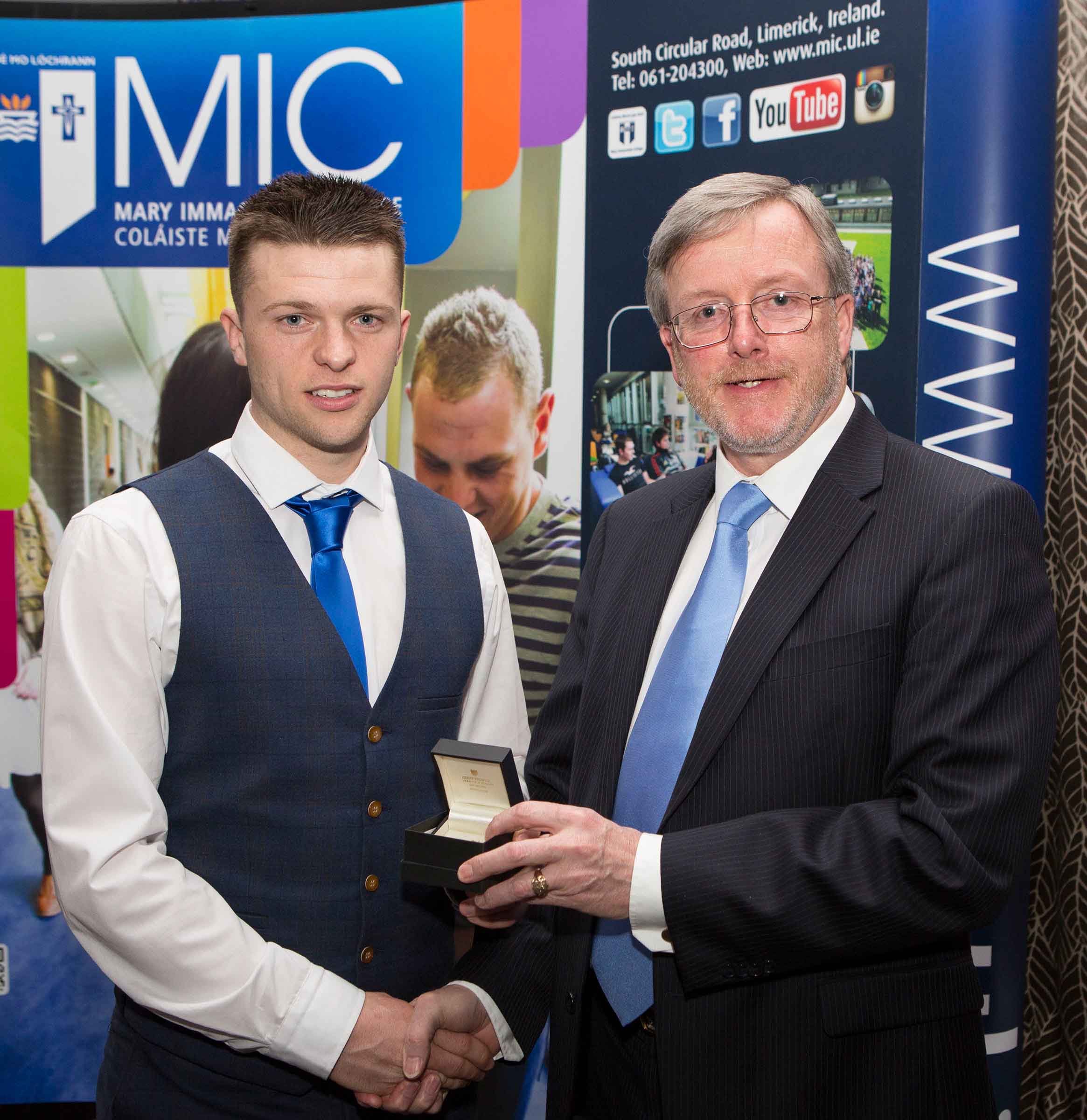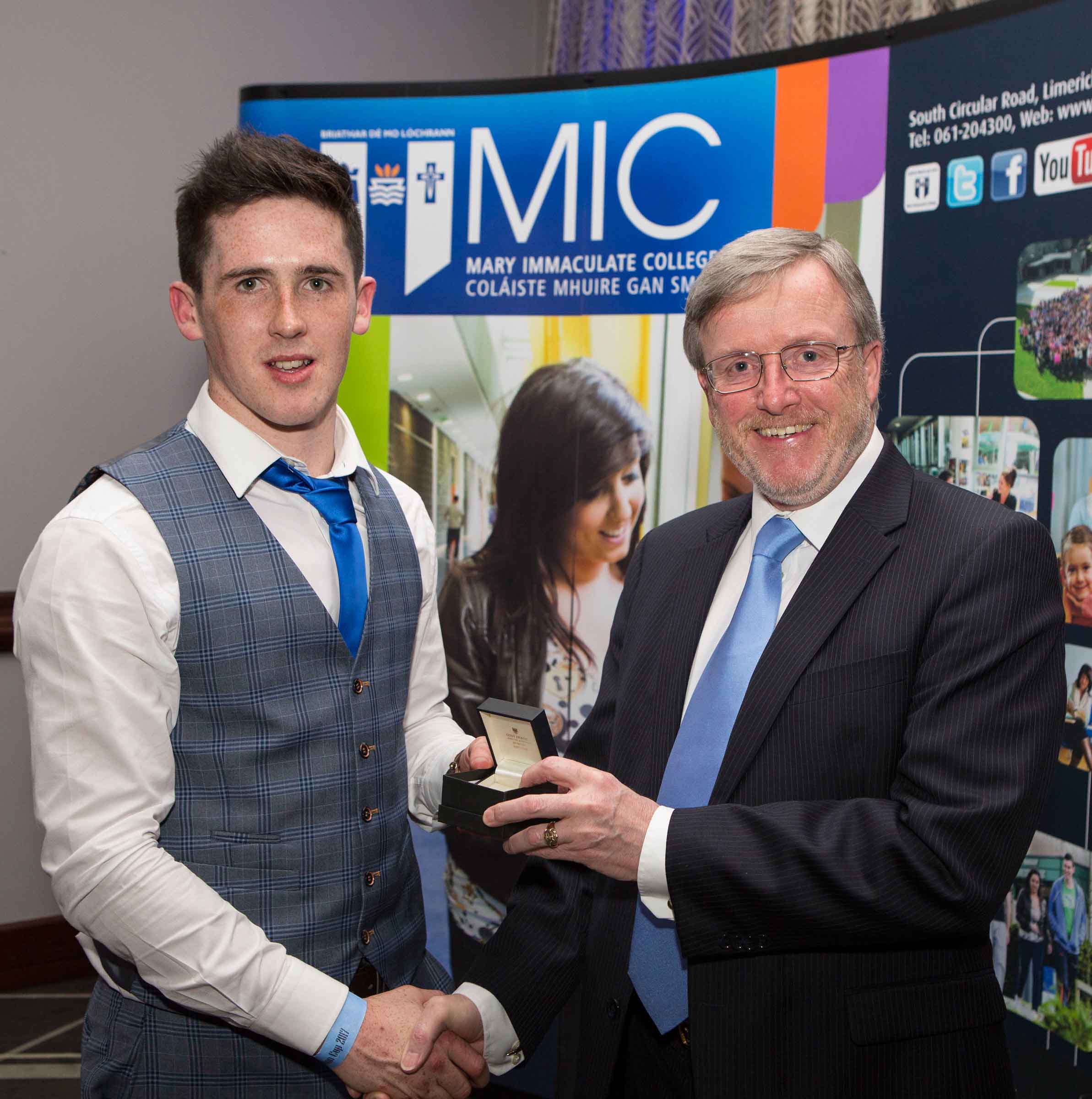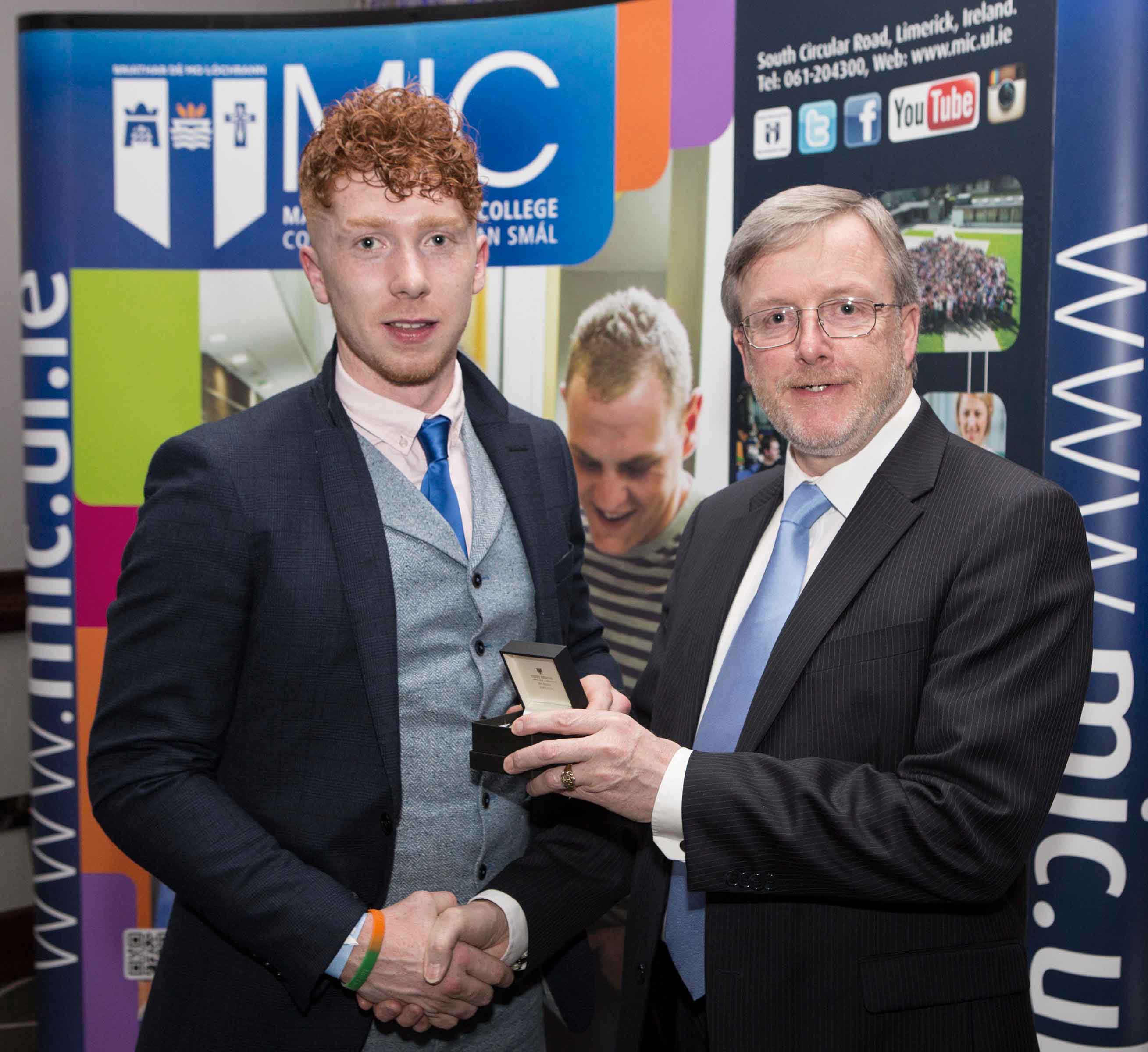 Repro Free. Pictured at the recent Mary Immaculate College Fitzgibbon Cup Celebration Dinner was 2017 GAA Hurling Rising Star and member of MIC victorious Fitzgibbon team, Cian Lynch from Patrickswell, Limerick with Professor Eugene Wall, Acting President of Mary Immaculate College. The MIC team made it a Fitzgibbon Cup two-in-a-row on Saturday 25 February when they overcame IT Carlow in the final of the championship.