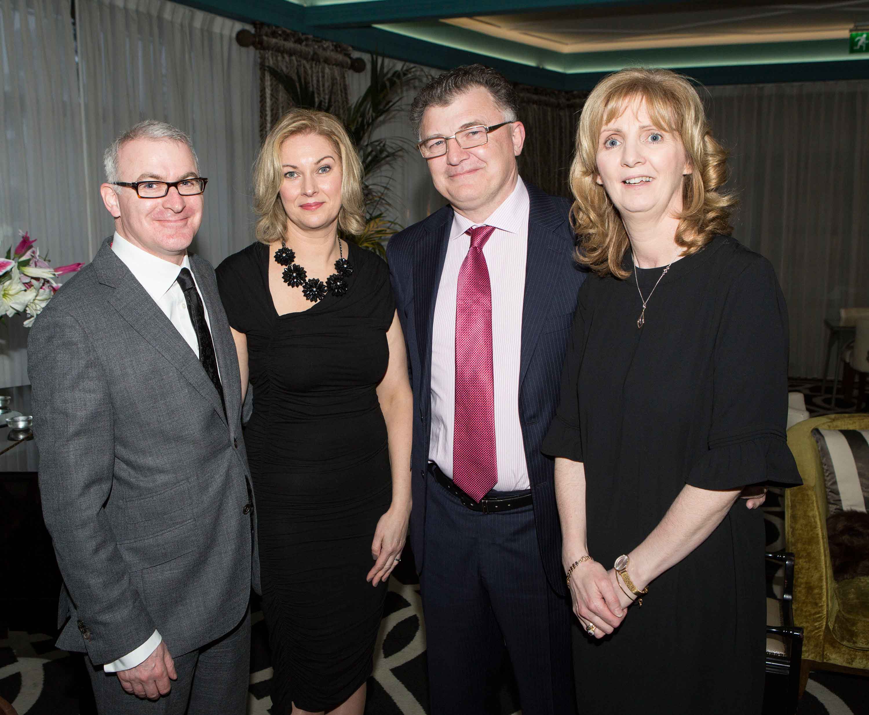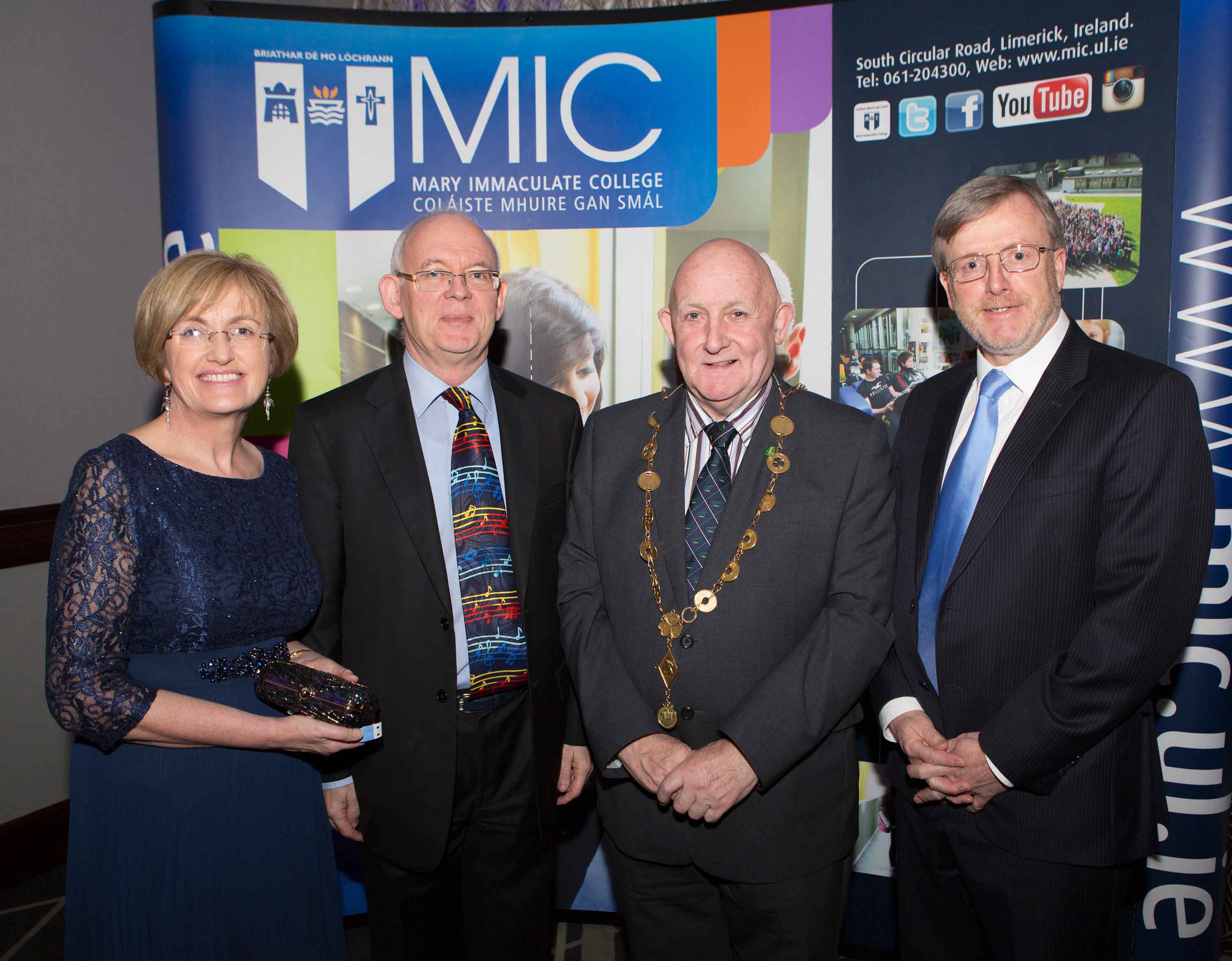 Repro Free. Pictured are Prof. Gary O’Brien, Assoc. Vice President, MIC and his wife Una Malone from Cratloe; Prof. Michael Breen, Dean of Arts and his wife Noreen O’Loughlin, lecturer, MIC, both from Sixmilebridge, attending the Mary Immaculate College Fitzgibbon Cup Celebration Dinner, held in the team’s honour in the Castletroy Park Hotel, on Monday 3 April.