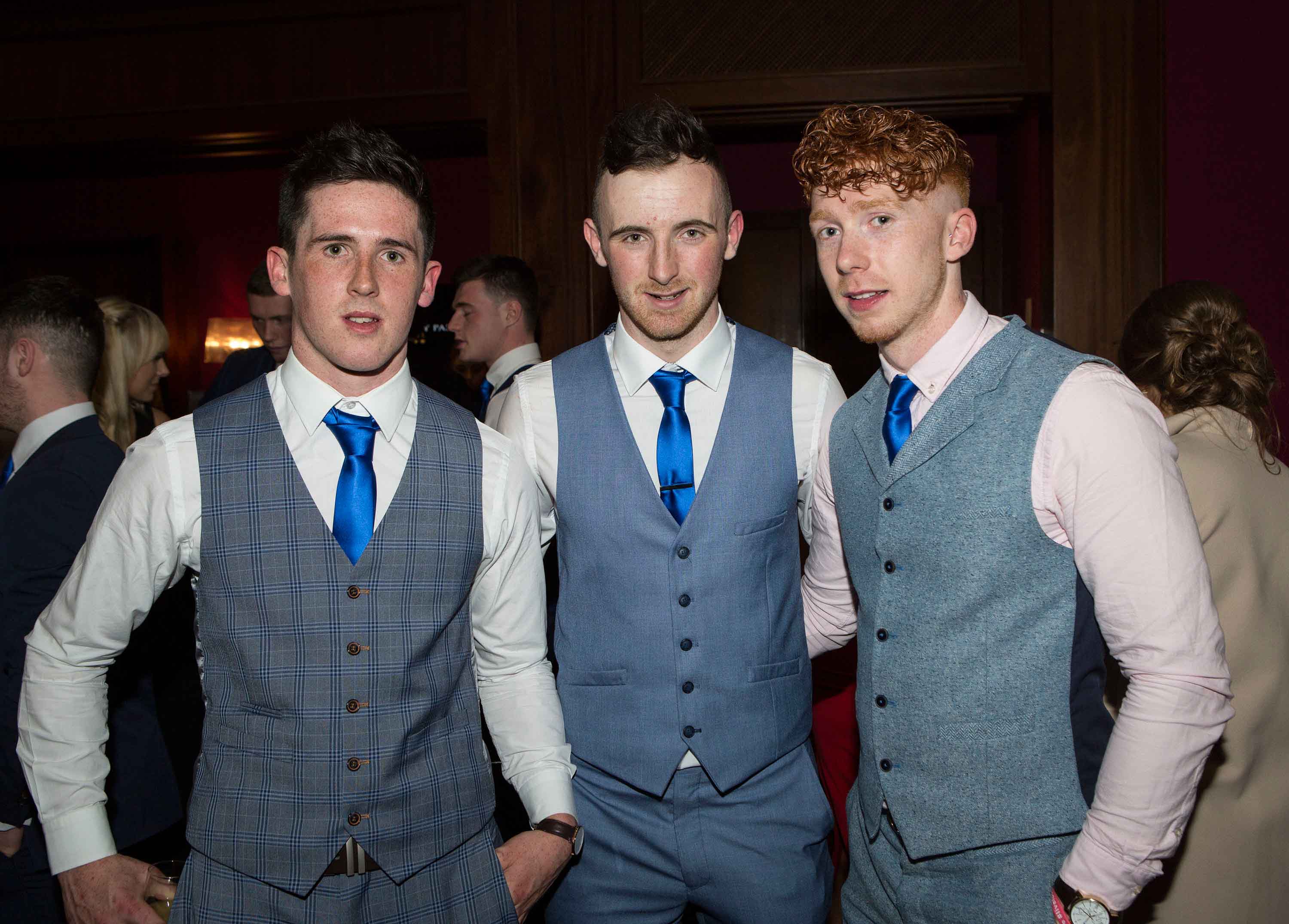 Repro Free. . Members of the victorious 2017 MIC Fitzgibbon Cup team Darragh O’Donovan and Richard English, both from Doon, Limerick and Cian Lynch from Patrickswell, Limerick pictured at the Mary Immaculate College Fitzgibbon Cup Celebration Dinner, held in the team’s honour in the Castletroy Park Hotel, on Monday 3 April.