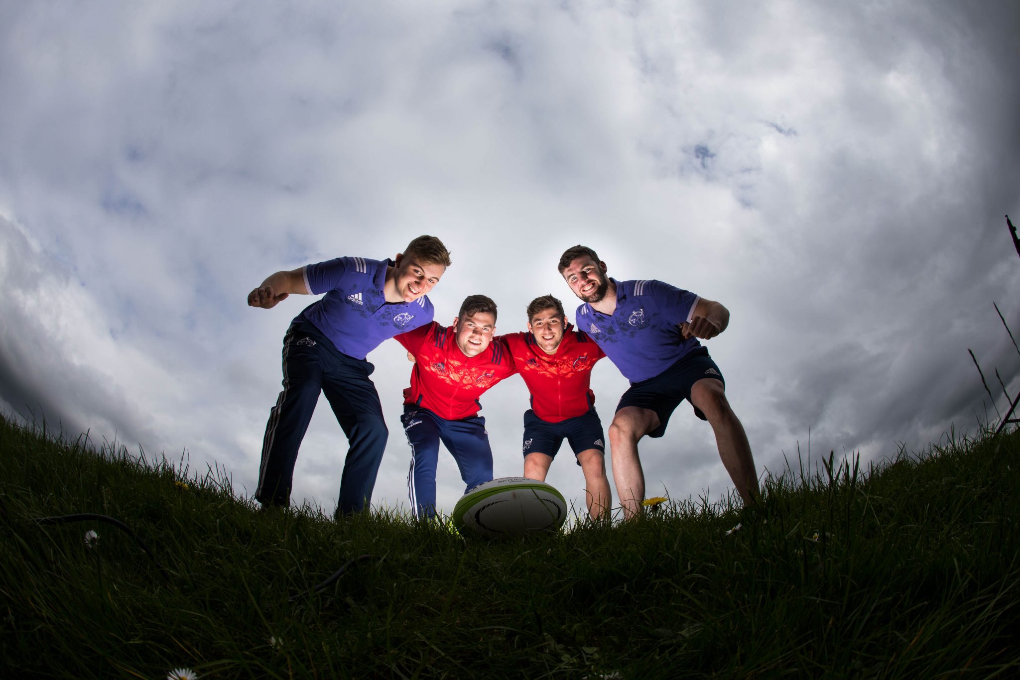 University of Limerick and Munster Rugby launch a new international underage rugby festival. Pictured at the launch are from left: Munster rugby’s Gavin Coombes, Conor Oliver, Dan Goggin and Sean OÕConnor.