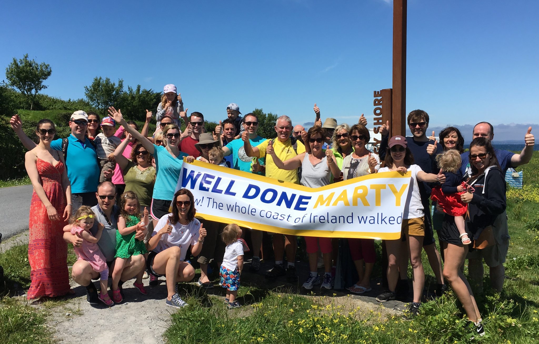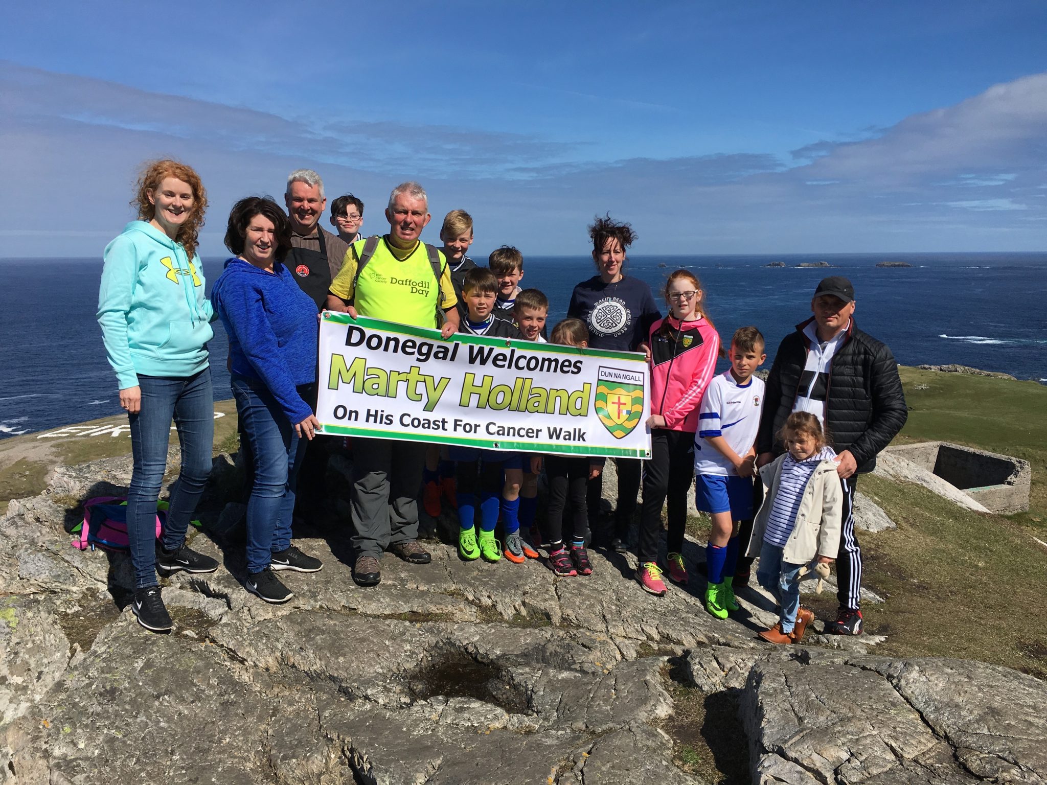 Dr Marty Holland finished his walk on the Flaggy Shore in North Clare where he was greeted his family and friends as well as the families of his friends who died from cancer.