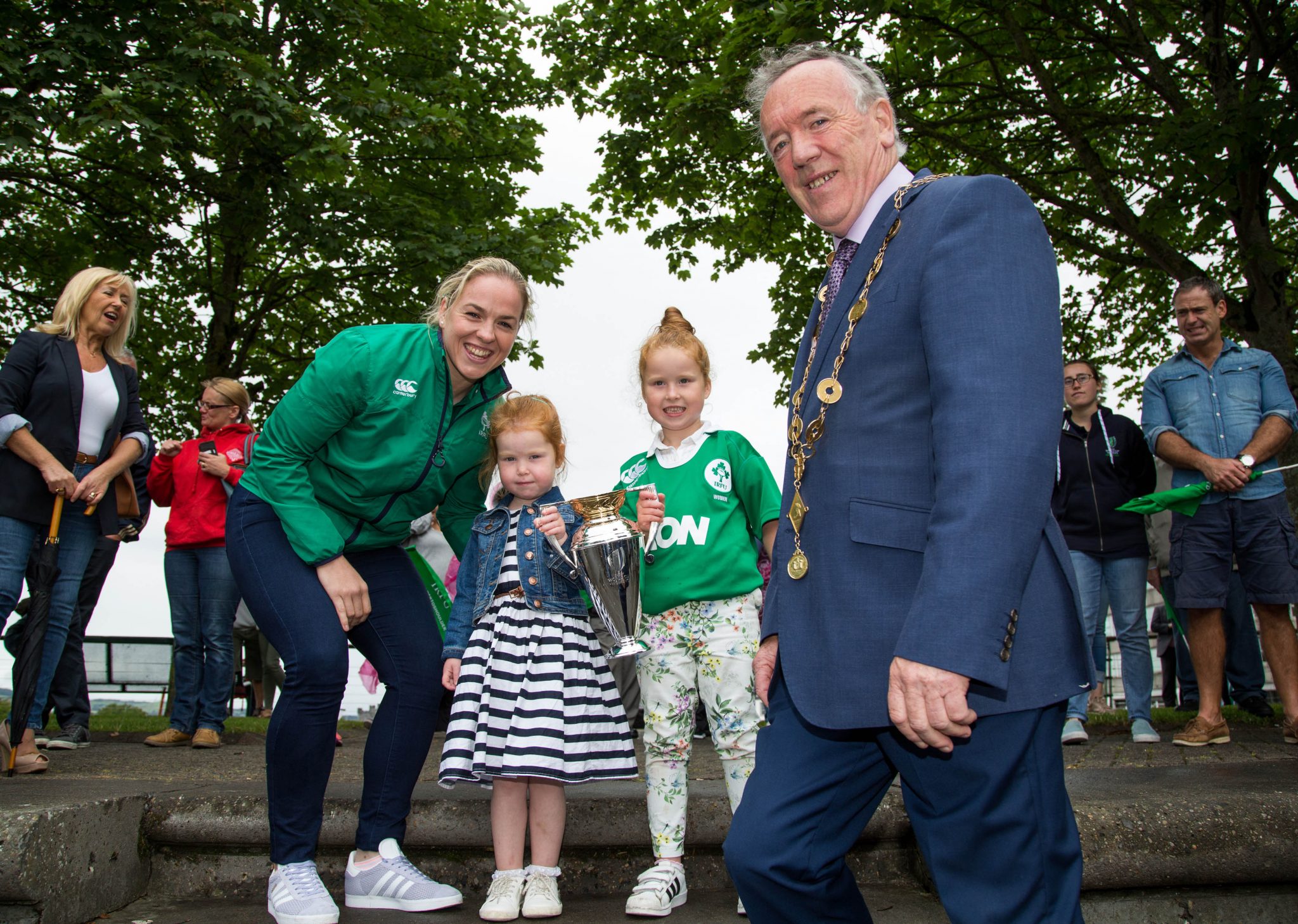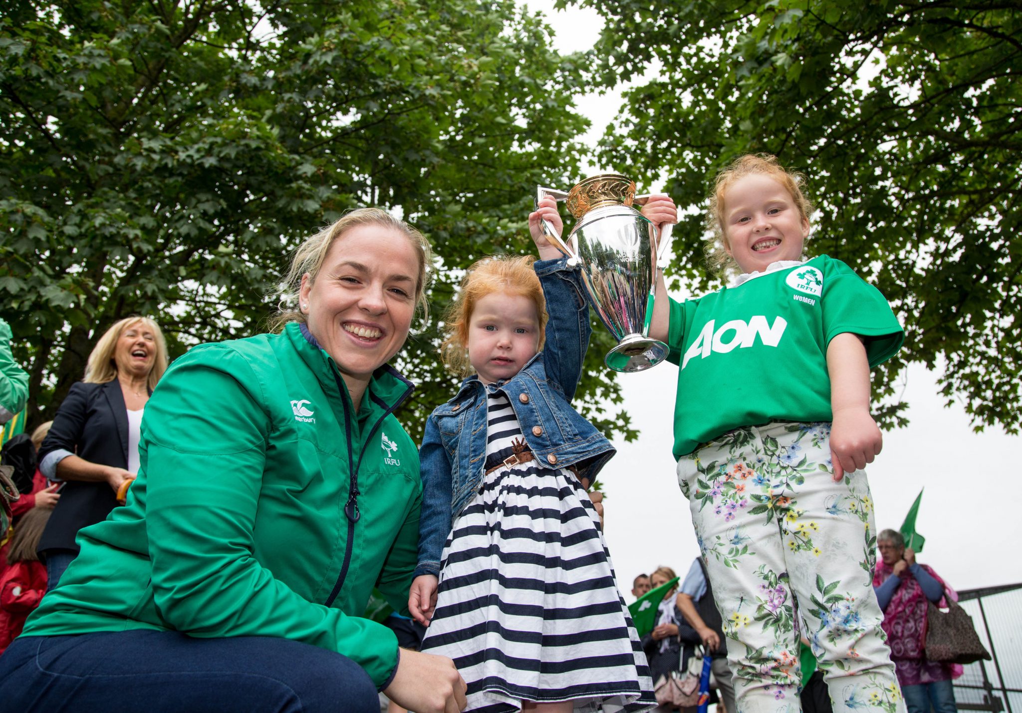 Ireland Women’s Rugby captain Niamh Briggs was mobbed by young fans in Limerick today, Thursday, July 27 as she arrived in the city by boat for the Women’s Rugby World Cup trophy tour.