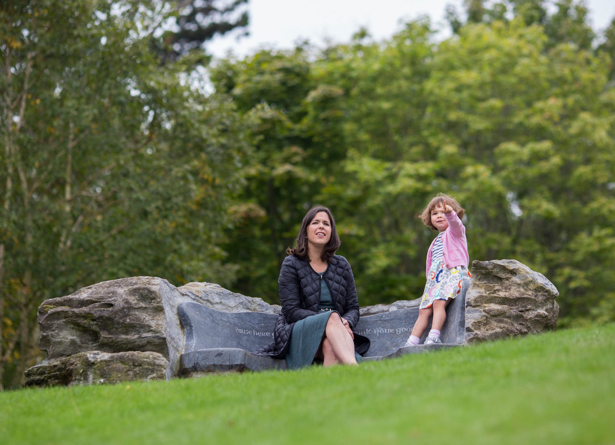 Enjoying the ‘family seat’ was the order of the day for a little girl whose late dad’s memory is now written in stone as our picture shows 2-year-old Sadhbh Thornton enjoying a rest on her dad’s seat.
