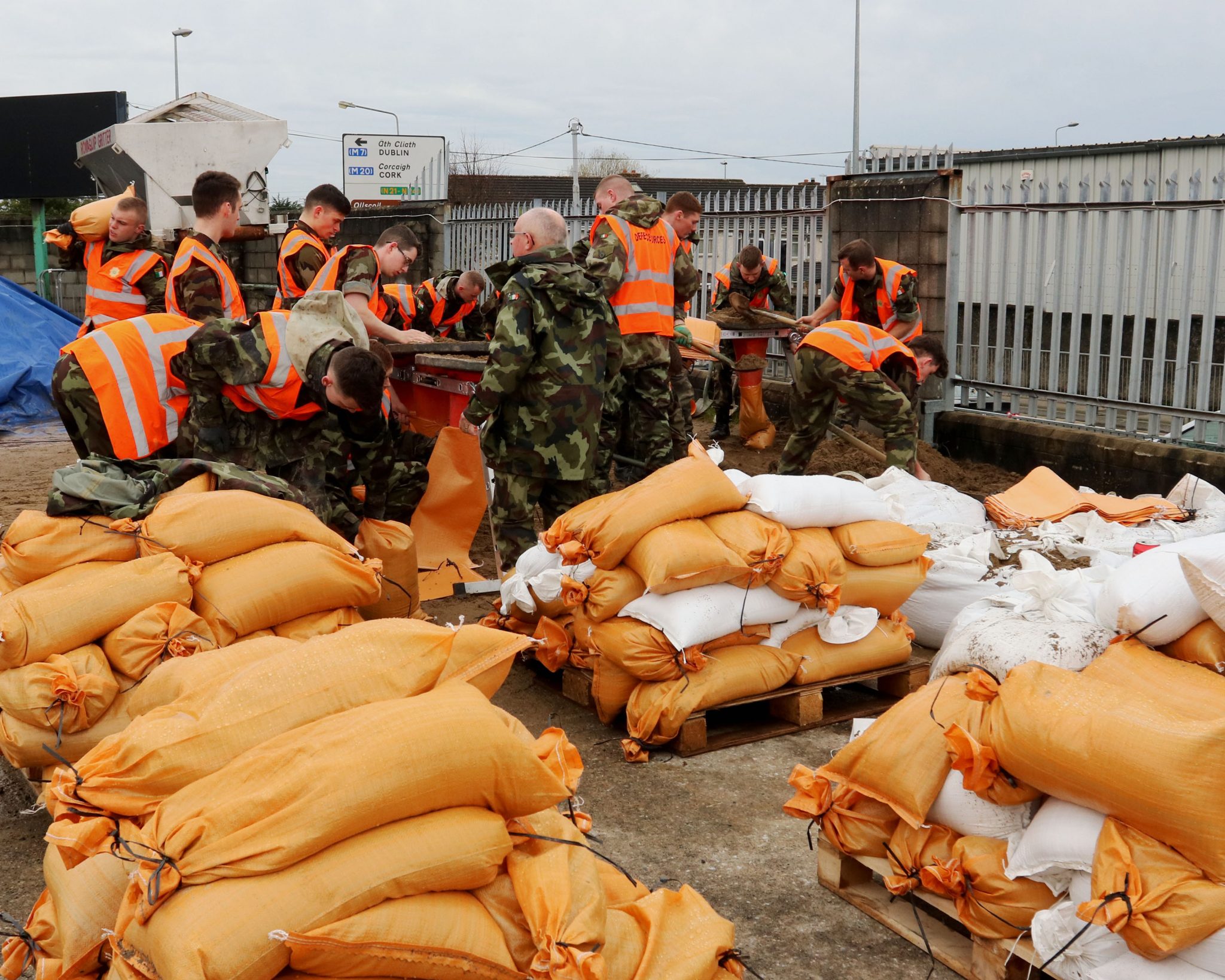 Army personnel from Sarsfield Barracks have filled the sandbags as part of Limerick’s multi-agency preparations for the adverse weather.