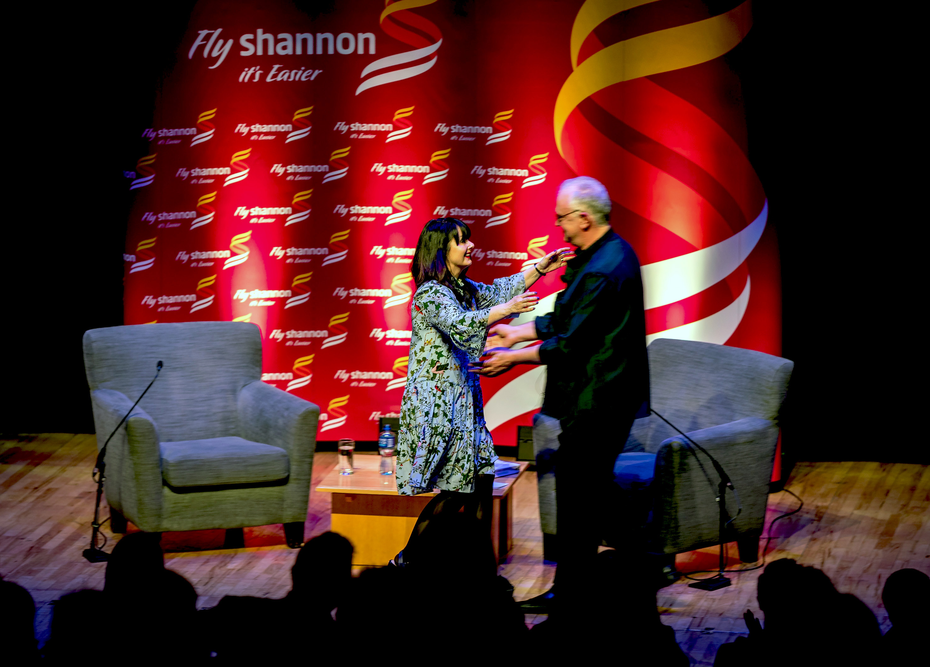 Back stage with Professor Joseph O’Connor, inaugural Frank McCourt Chair in Creative Writing at the University of Limerick and Award winning Irish novelist and non-fiction writer, Marian Keyes .