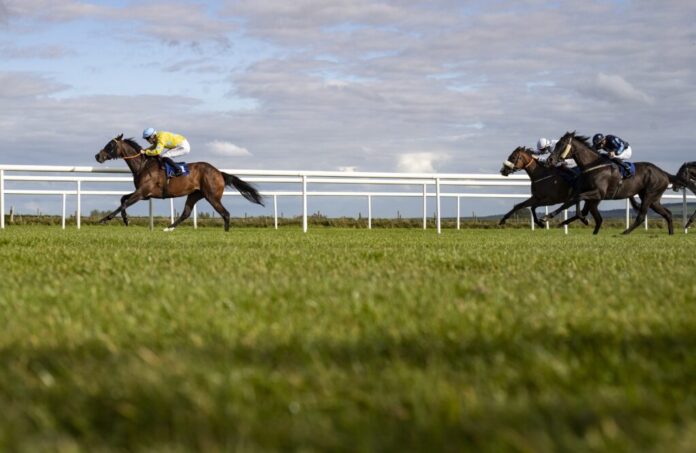 Royal Canford was another winner for the Billy Lee/Willie McCreery partnership as she made all the running to land the 7f handicap. A strong 5/1 chance, she won by two and three-parts of a length from the Kevin Coleman-trained Swiss Army Officer for her owner/breeder Michael O’Donnell, a winner for McCreery on his 52nd birthday. It was also a winner for Lee, his 30th of the season, on his first ride back after sitting out two weeks in quarantine after riding Romanised in France.