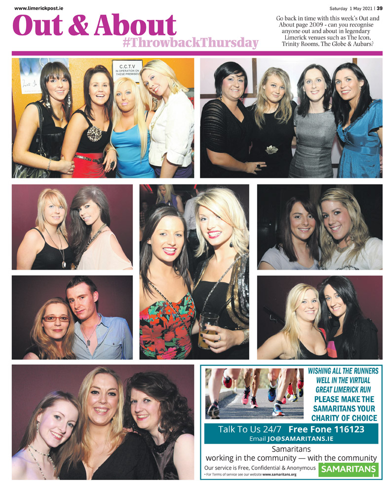 Go back in time with this weekโs Out and About page from 2009 – do you recognise anyone out and about in legendary Limerick venues such as The Icon, Aubars, Dolans and Trinity Rooms.