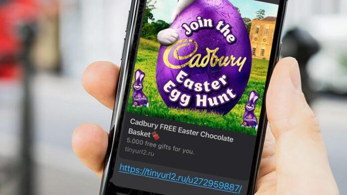The fake messages spreading quickly on WhatsApp about Easter eggs invites the recipient to grab a āFREE Cadbury Ā Easter Chocolate Basketā by clicking through to a site that has nothing to do with Cadbury, or Easter eggs for that matter.