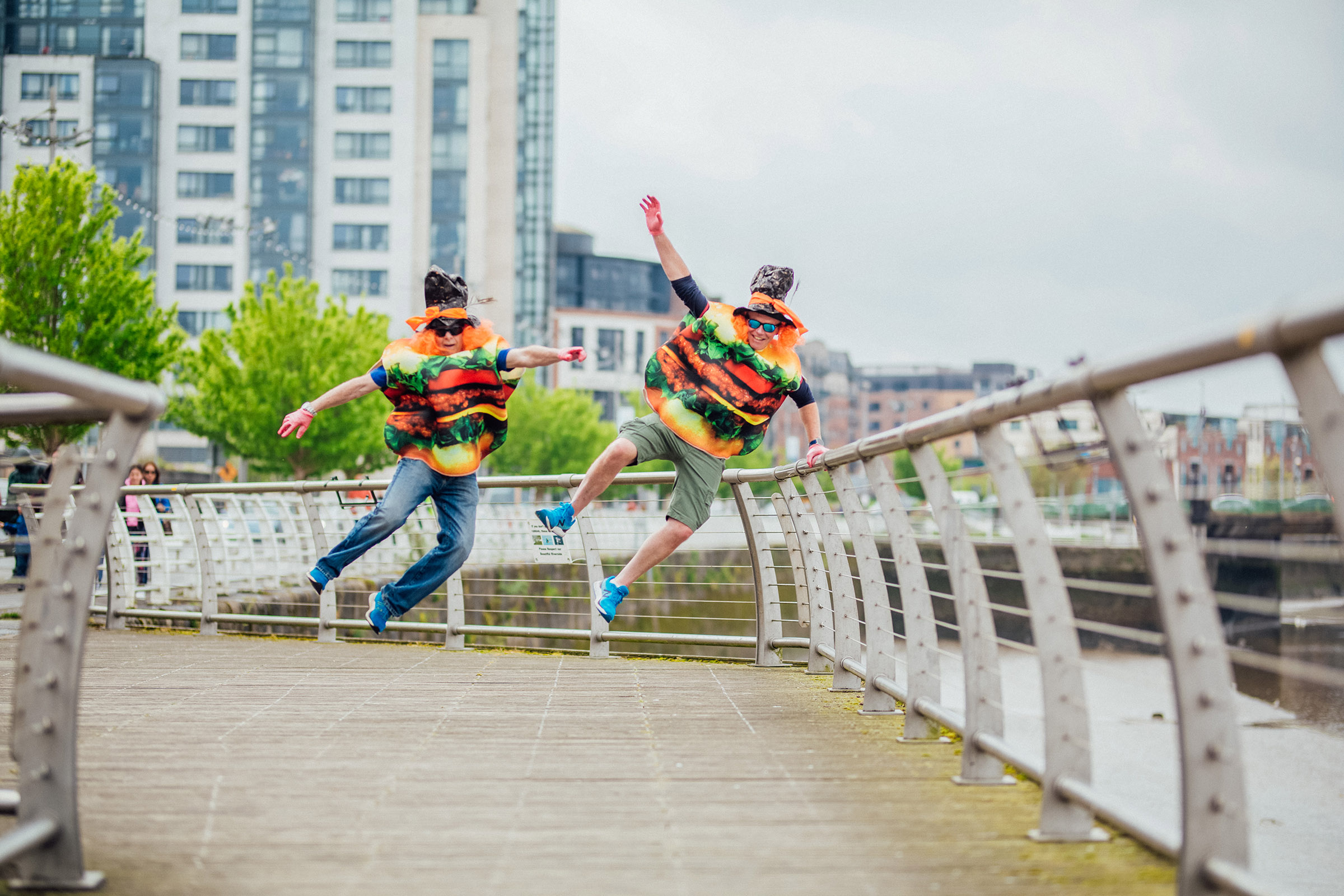Fergal Deegan and George take a break from flipping burgers at the Riverfest barbeque competition.