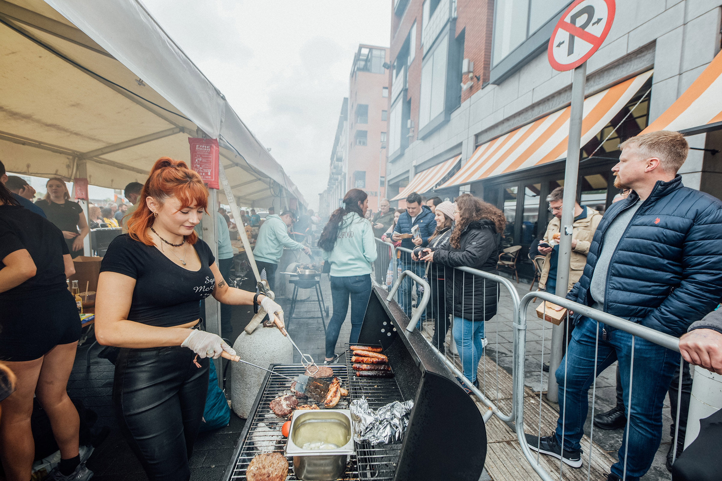 Emma Jane Robinson of Squire Maguire’s cooking up a storm at the Riverfest Barbeque on the Boardwalk.